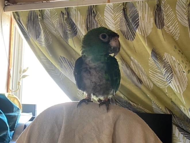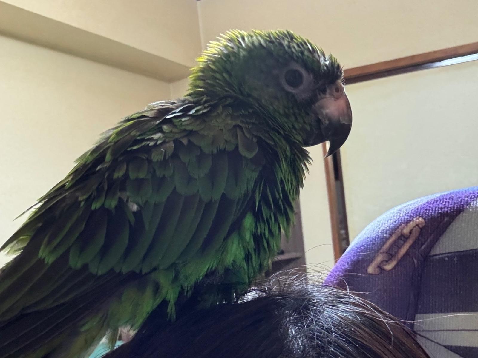 鳥の種類はズアカハネナガインコで少し大きめの中型インコです。