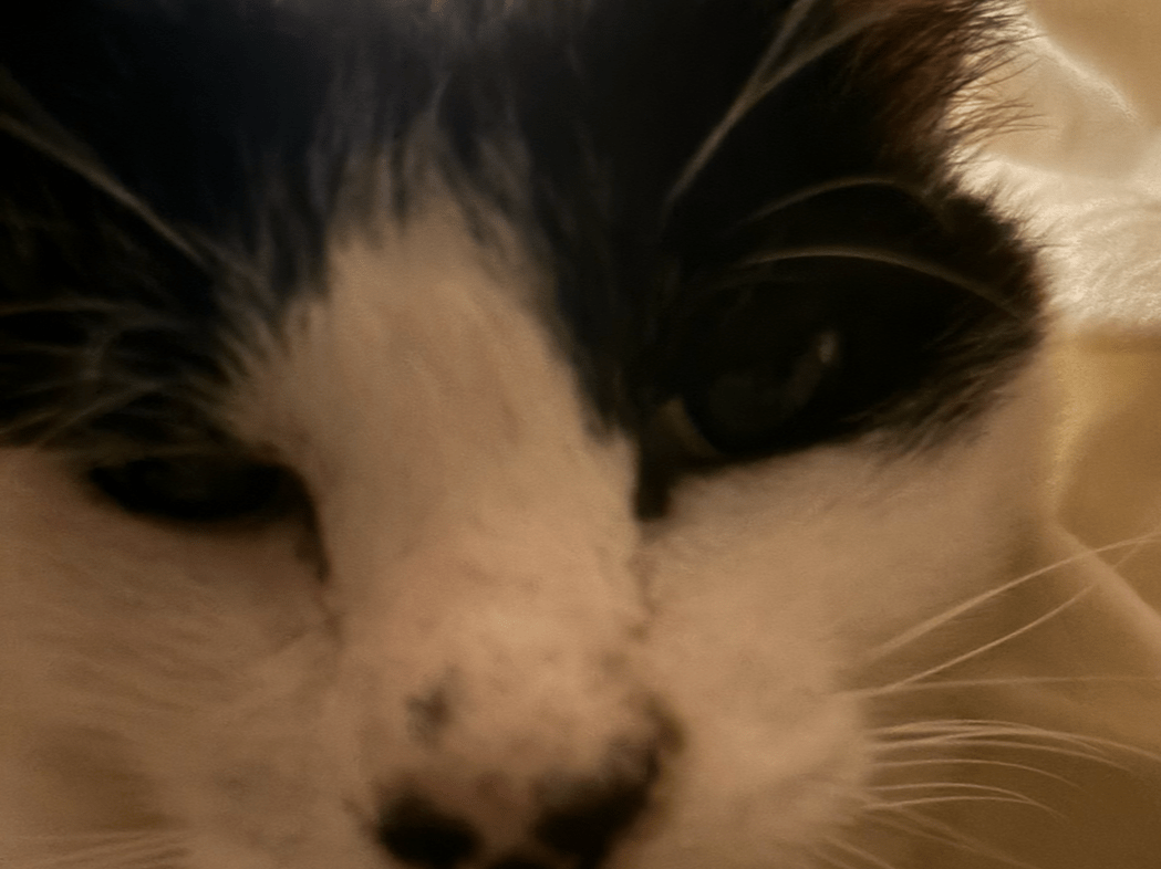 白黒ハチワレ猫です。耳に猫の足跡みたいな模様あり。