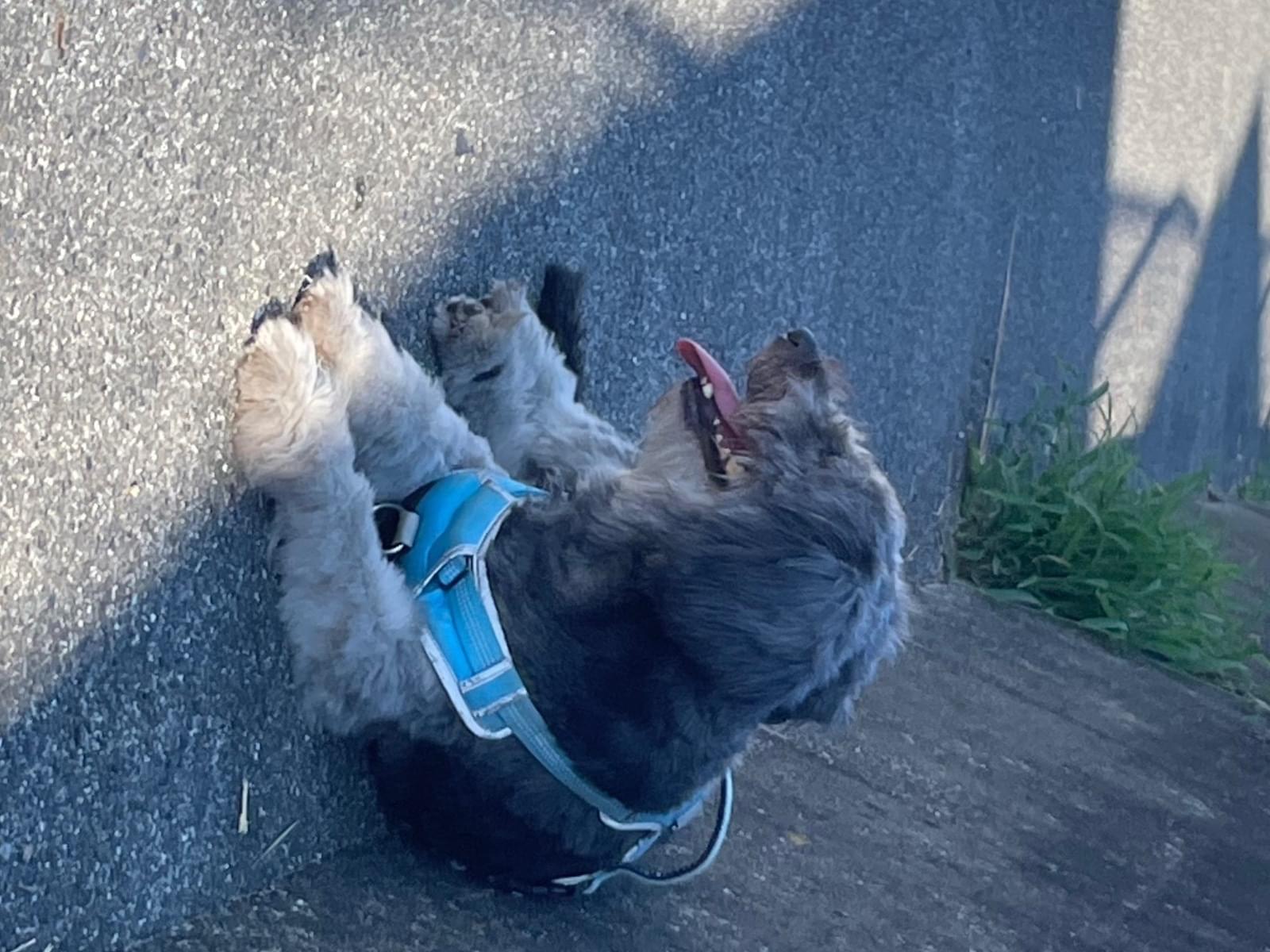 グレーのシュナウザーミックス?水色ハーネスの犬を警察に保護してもらいました