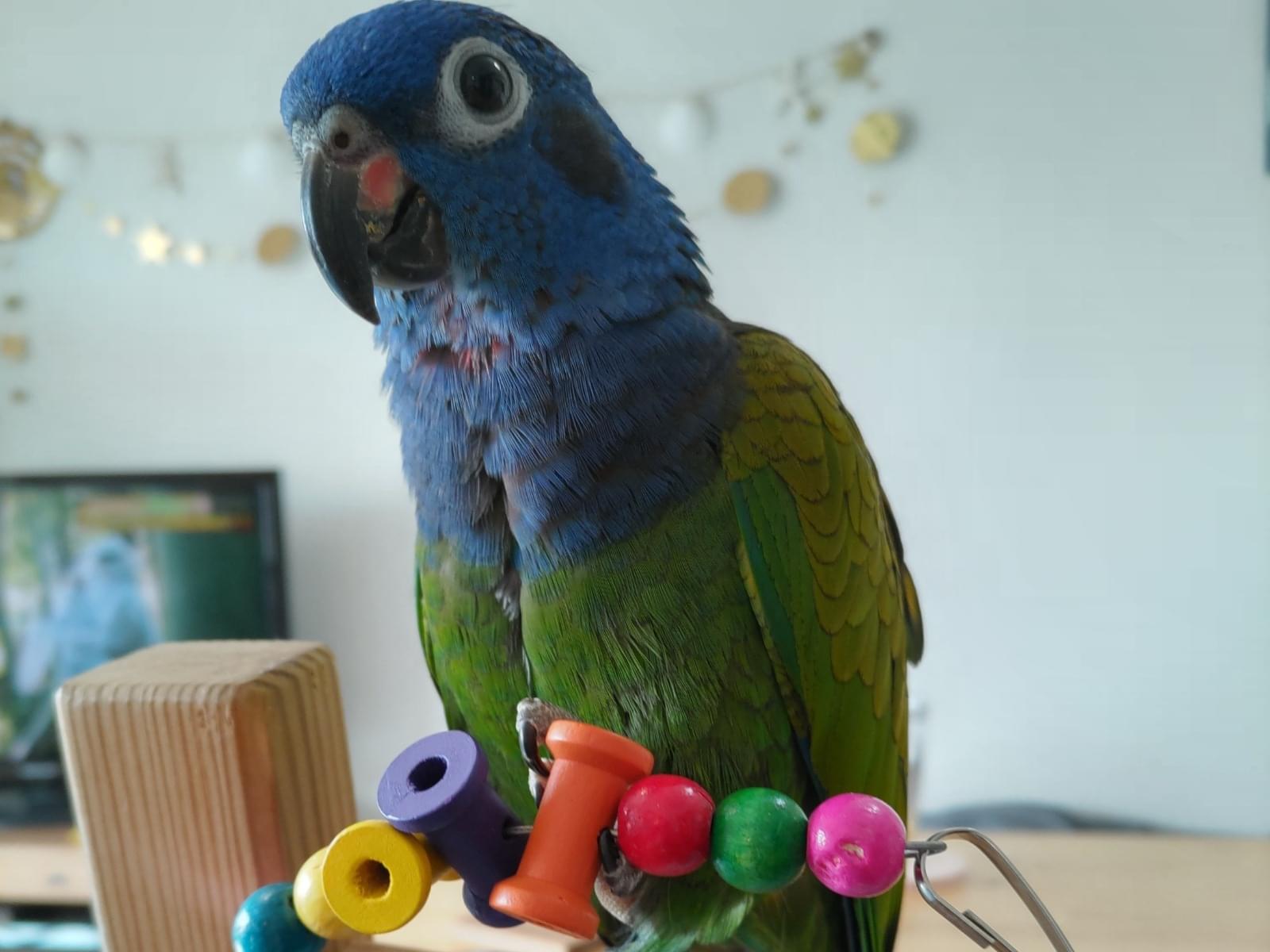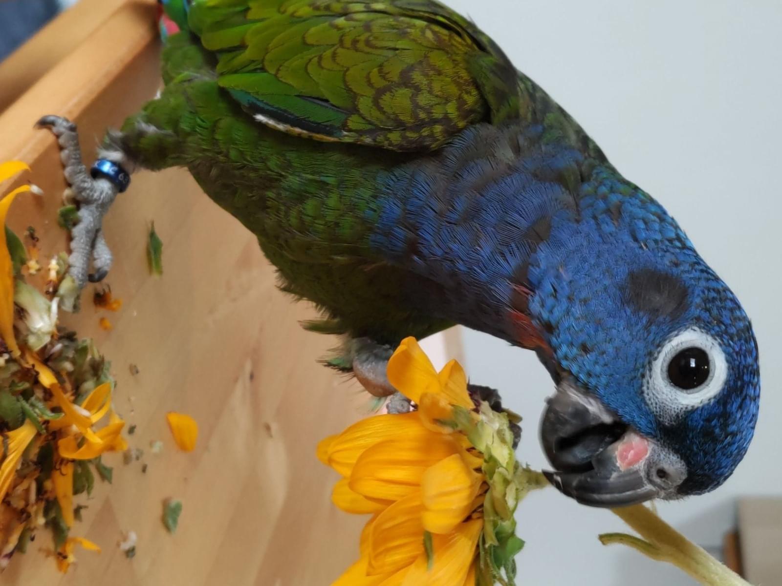 手乗りで人慣れはしていて、飼い主以外の人間の肩にも止まれる子です。