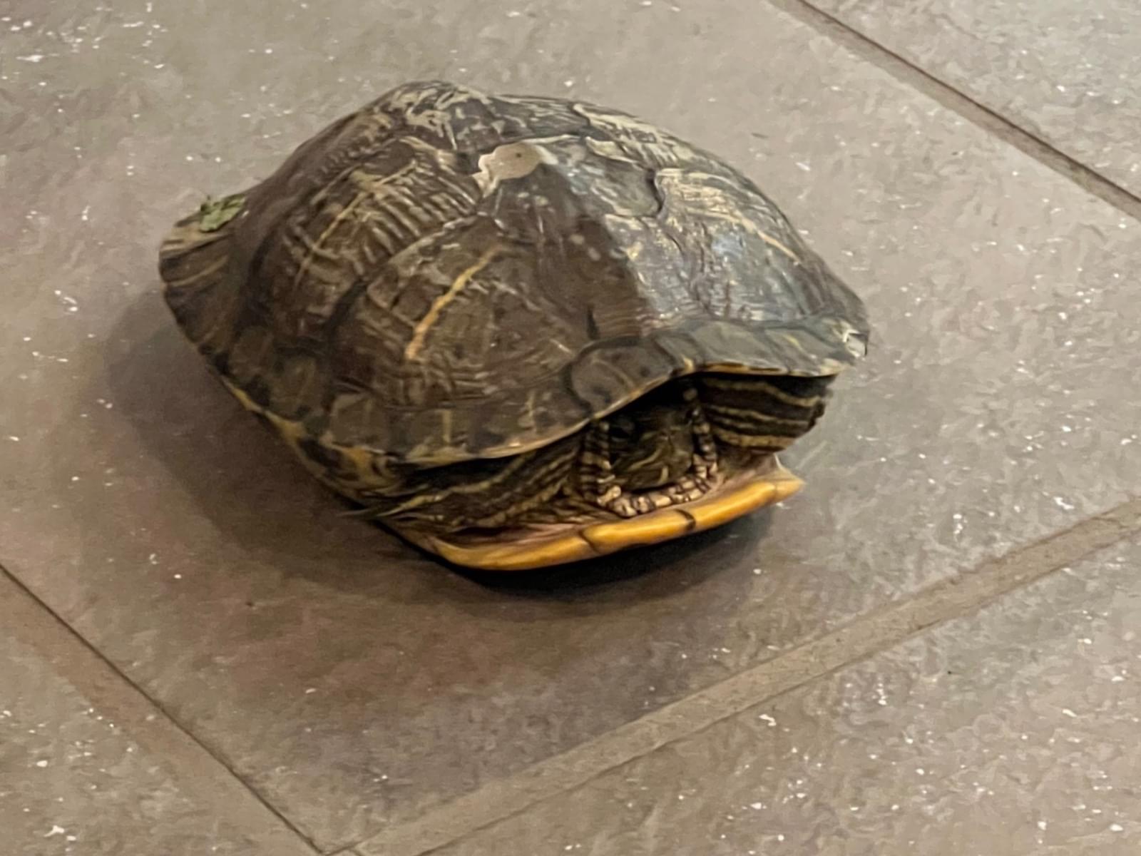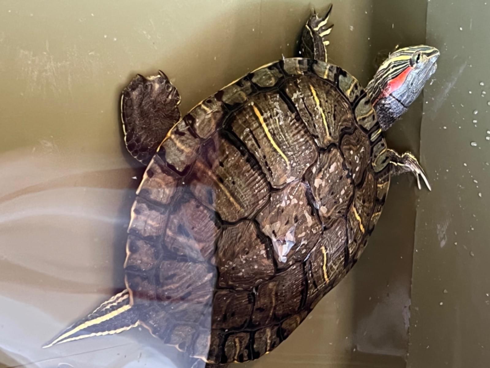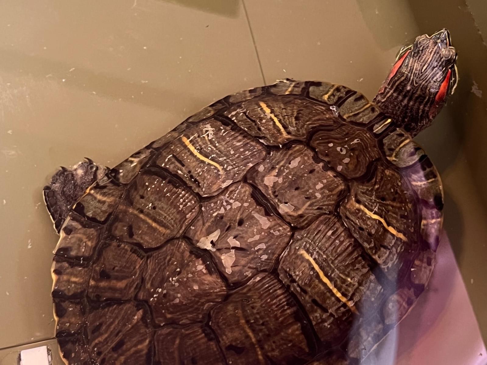 この猛暑の中、水辺のない所を一生懸命歩いてかなり乾燥して死にそうなミシシッピアカミミガメ?を一時保護しています。かなり個体も綺麗な為、飼われていたのでは無いかと思います。お心当たりの方はご連絡お願い致します。