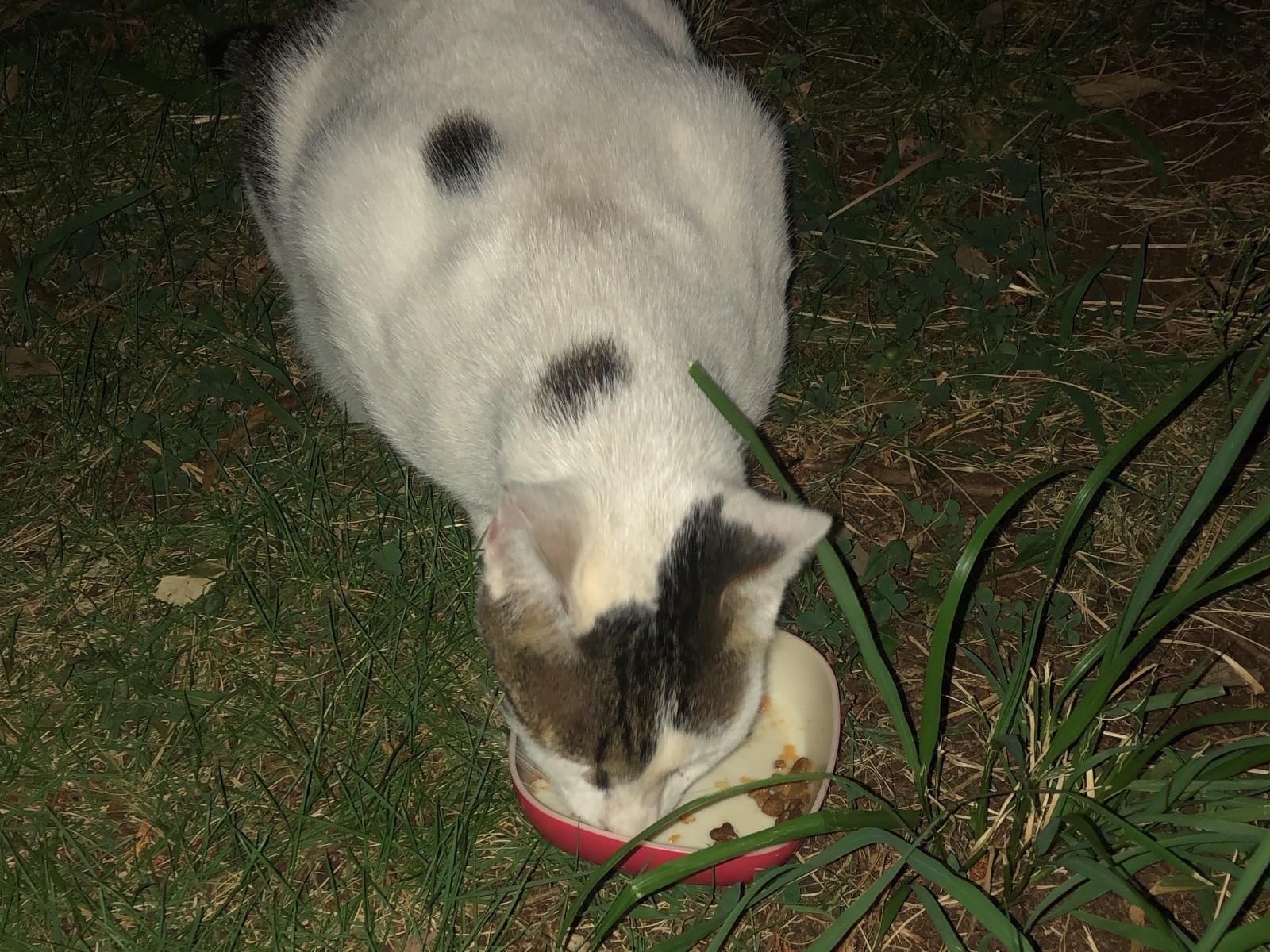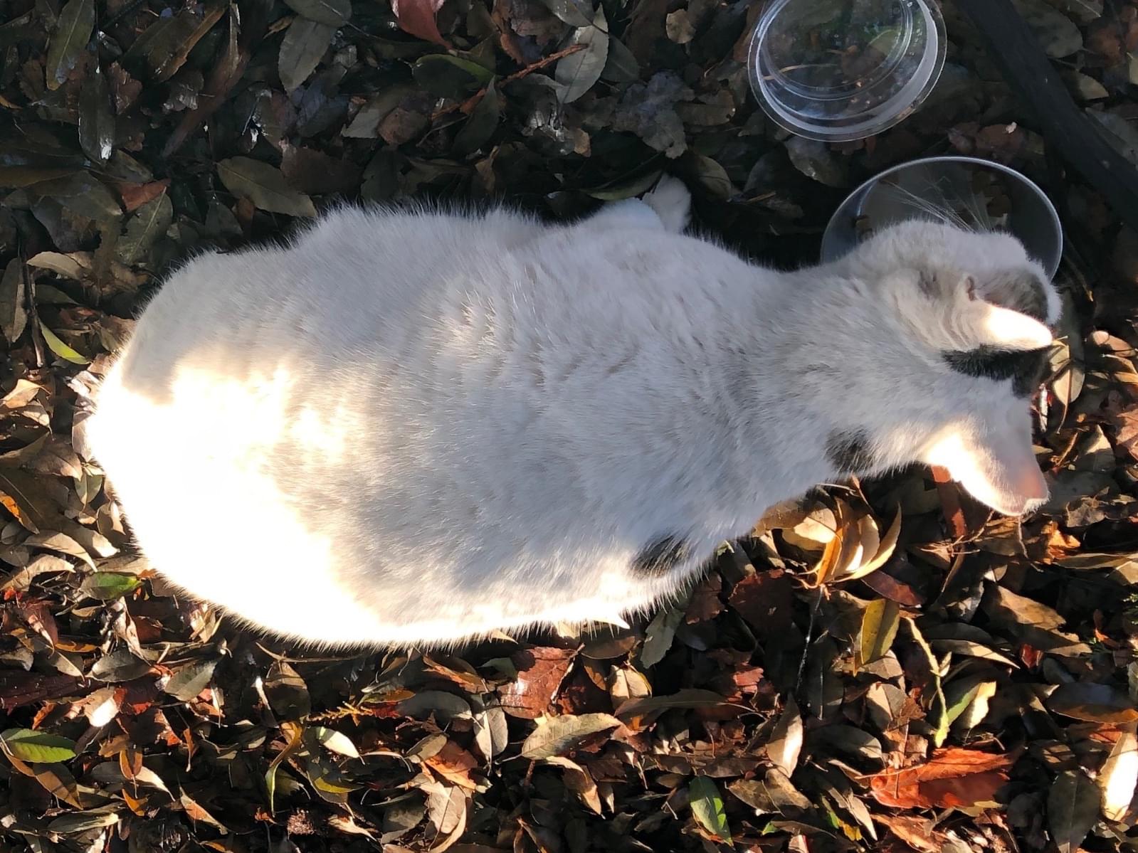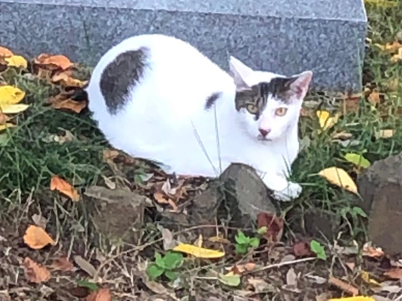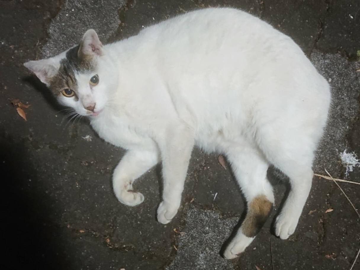 当日の朝まで元気でいました。見かけた方はご連絡下さい。用心深く、人には寄ってこないと思います。体の右側は柄がありますが反対側は白のみ。