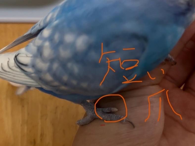 1年前に鳥かごの隙間に右あしの爪が挟まり、爪が取れてしまいました。少しずつ伸びてきたので1本だけ極端に短いです。