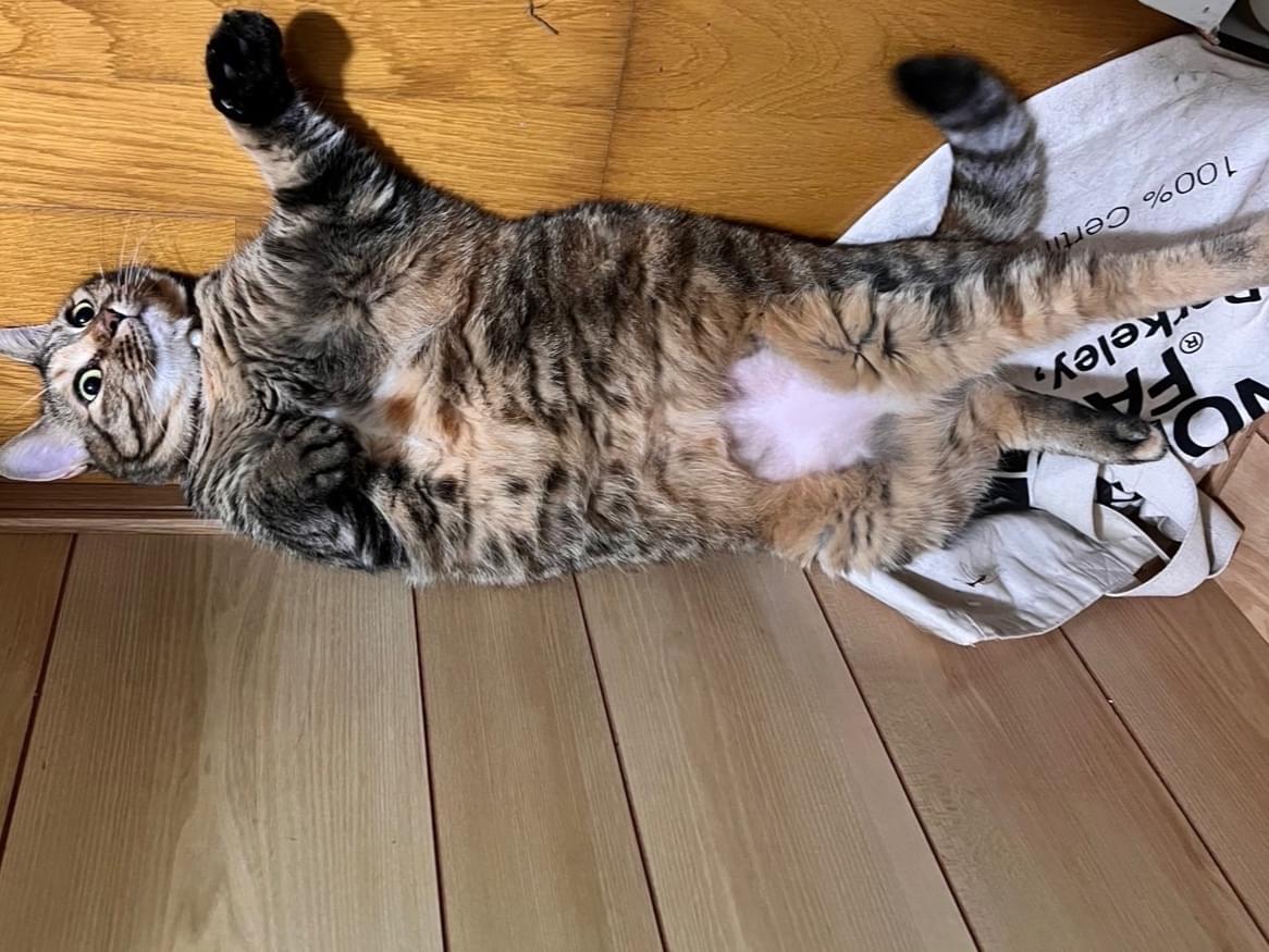 下腹部に舐めハゲあり、顎が顎髭のように少し毛がながいです。