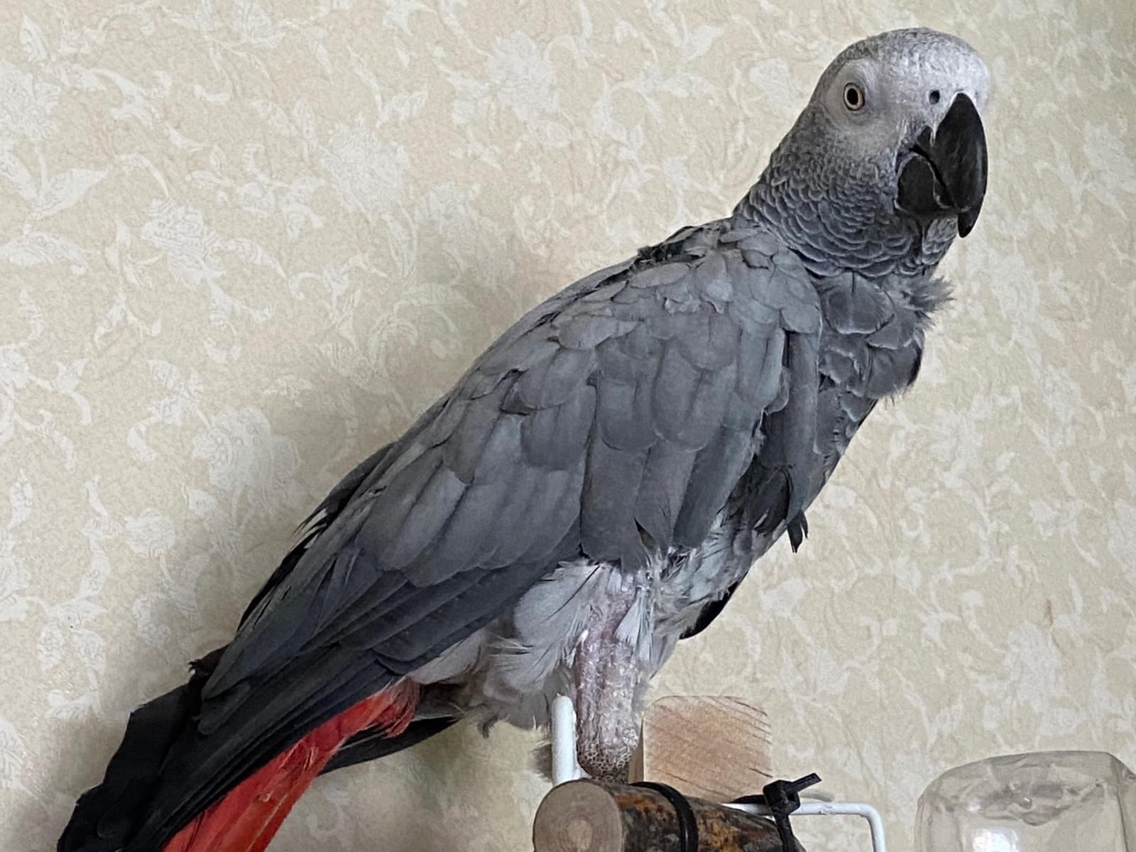 気管を悪くしていて投薬治療中です。バサバサしたり短距離でも飛ぶとはぁはぁしてしまいます。人慣れしていて手乗り、肩のりします。色んな声でよく囀ります。よく話す言葉は、ヨウ・パパ・ムゥ・ムゥ子・かわいいねぇ・おはよう、等です。