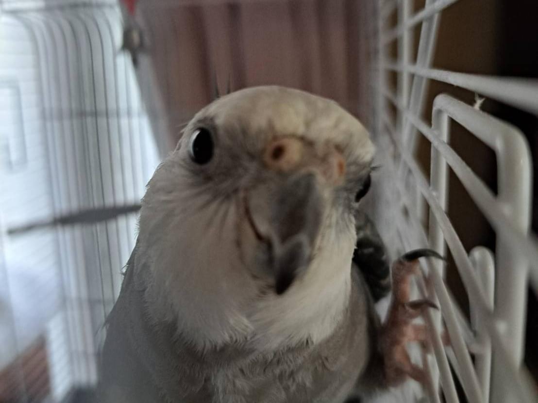グレーのオカメインコで、ほっぺにオレンジ模様は、ありません。