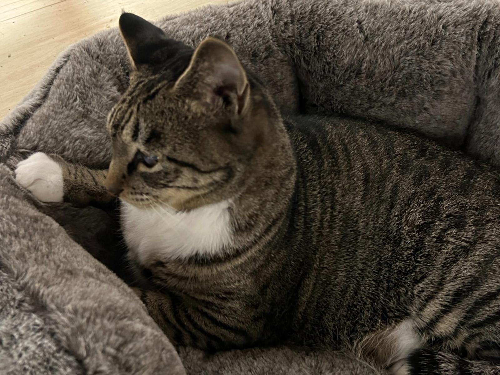 キジトラ(♀)で、お腹と足の先は白いです。さくら市の喜連川工業団地、さくら市松島周辺での情報を探しています。左目と後足に不自由あります。人懐っこい性格です。どうぞよろしくお願いしますm(__)m