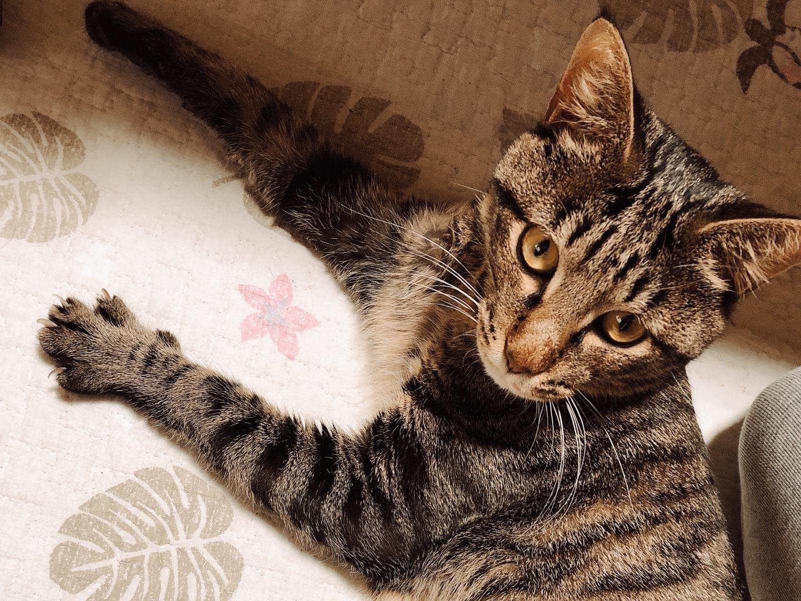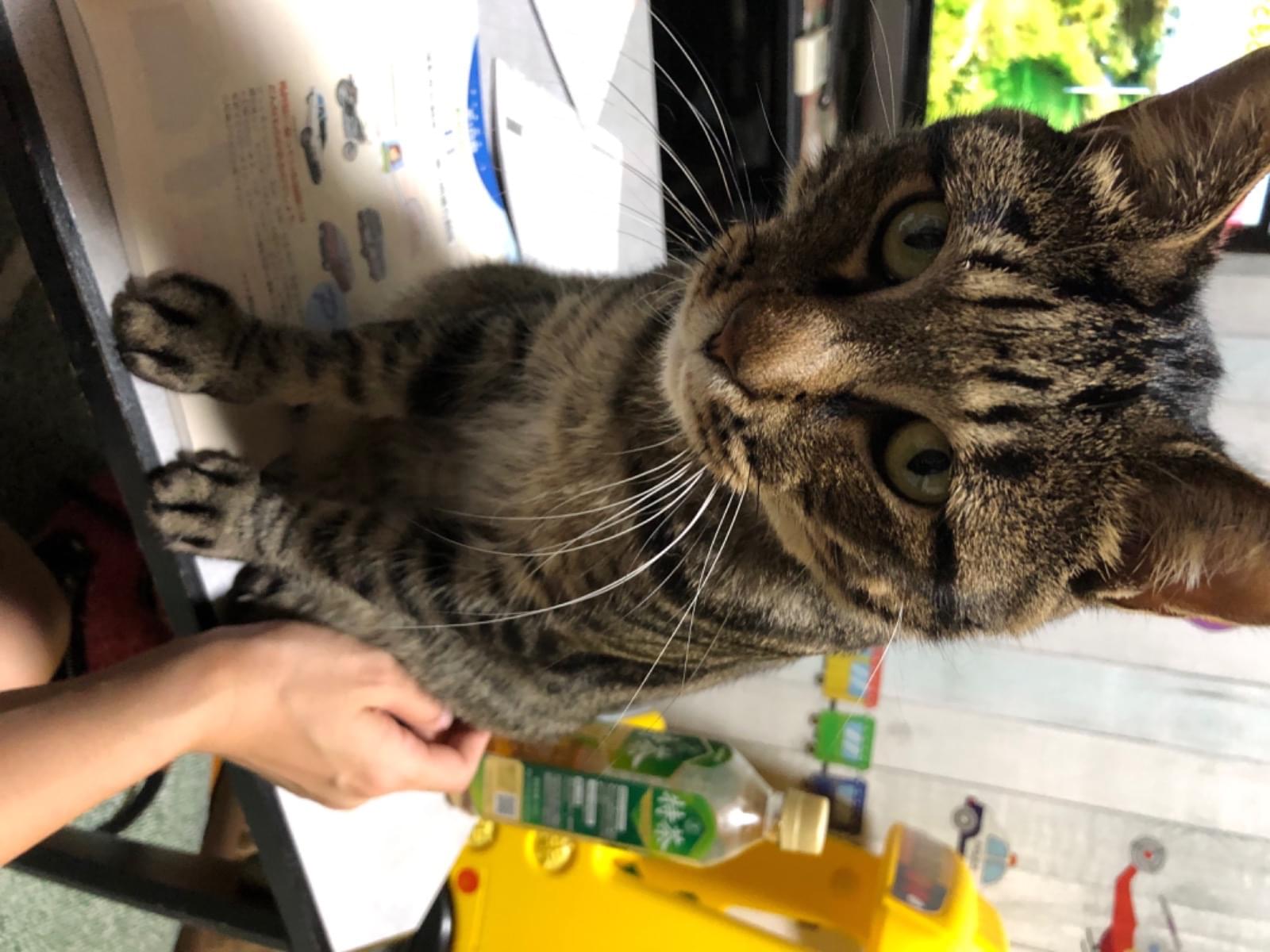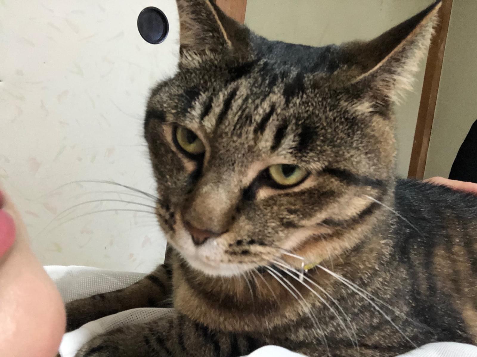 キジトラ、5歳、成猫、当時6キロ、去勢済み、耳カット無し、尻尾長めストレート、超臆病、超ビビリ