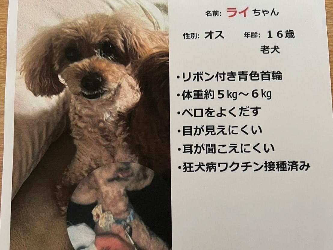 リボン付き青色首輪をつけた薄茶色のトイプードルを探してます