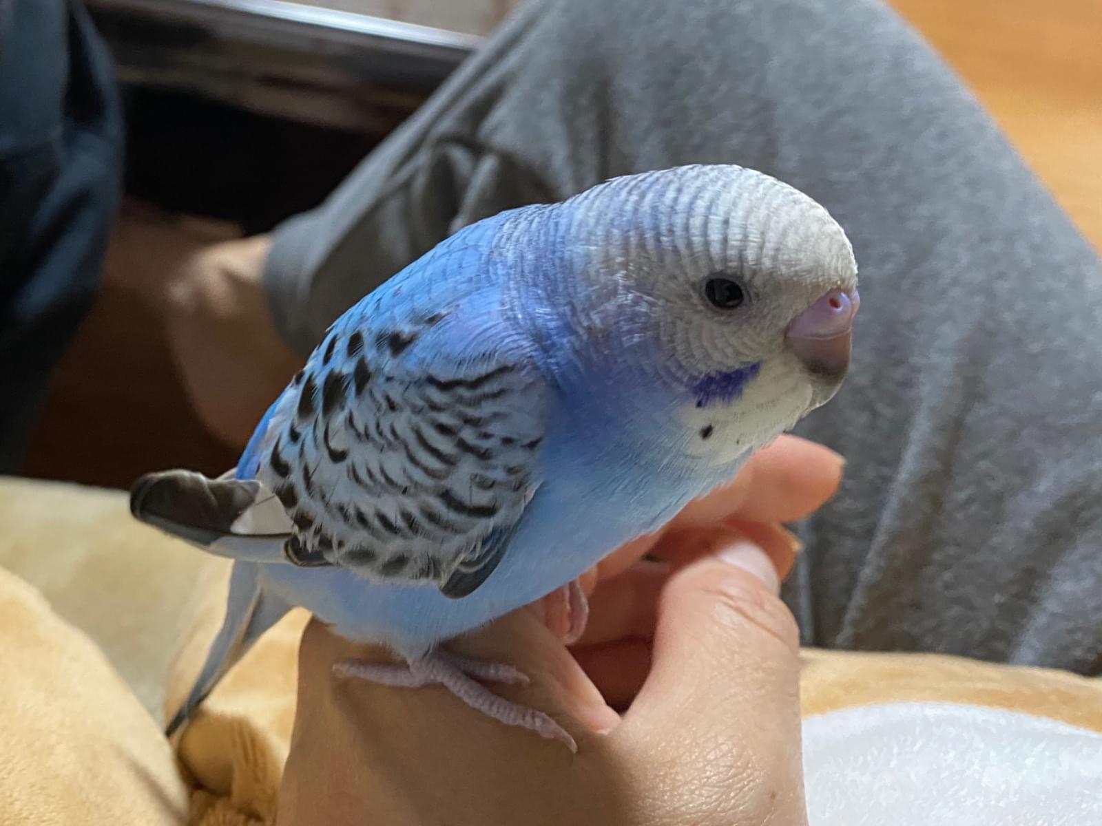 青色で、まだ生まれて、一ヶ月ぐらいの赤ちゃんです。