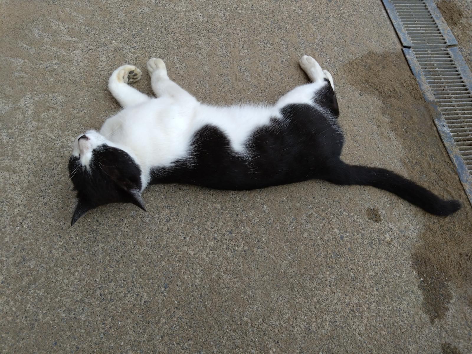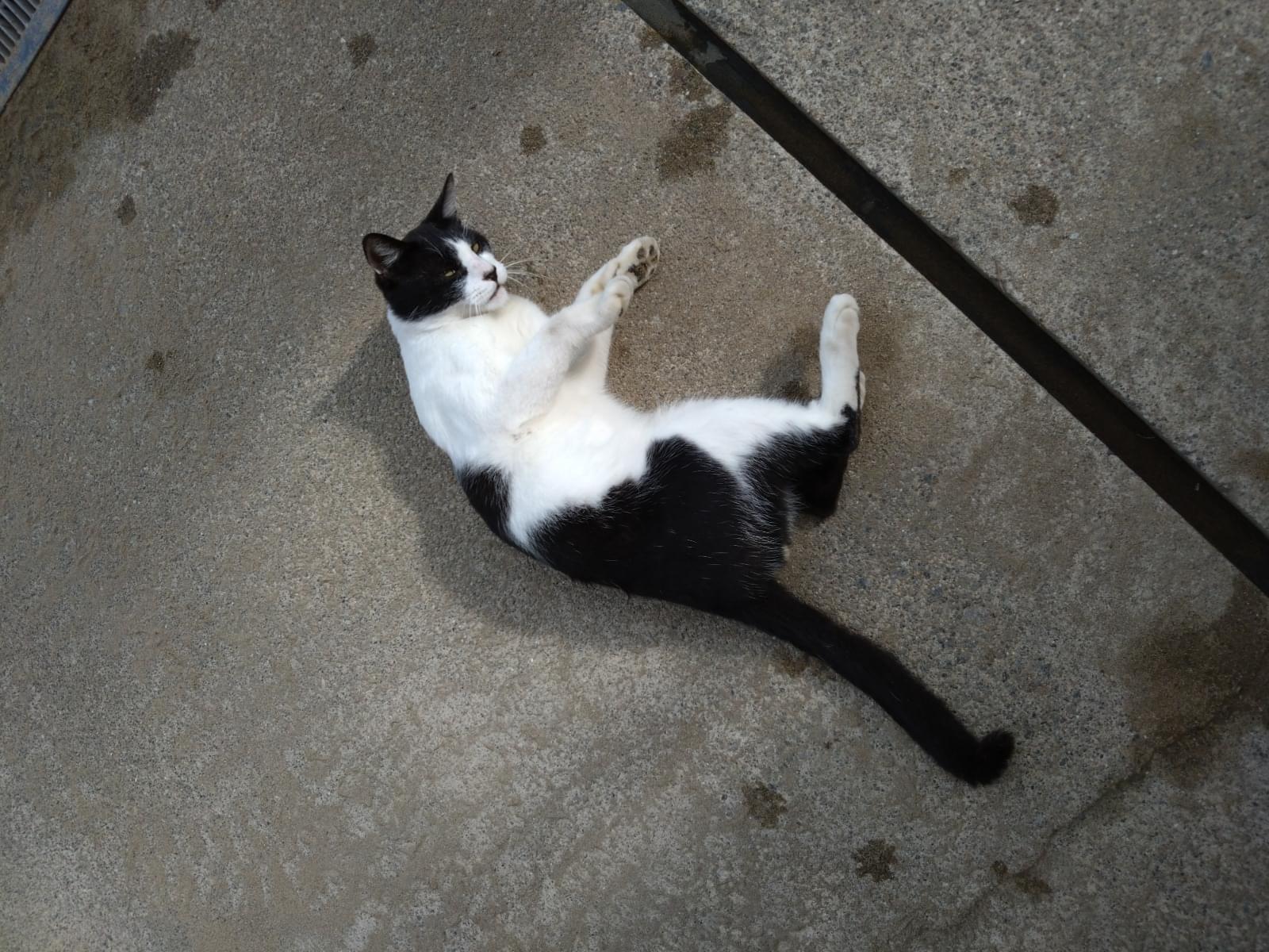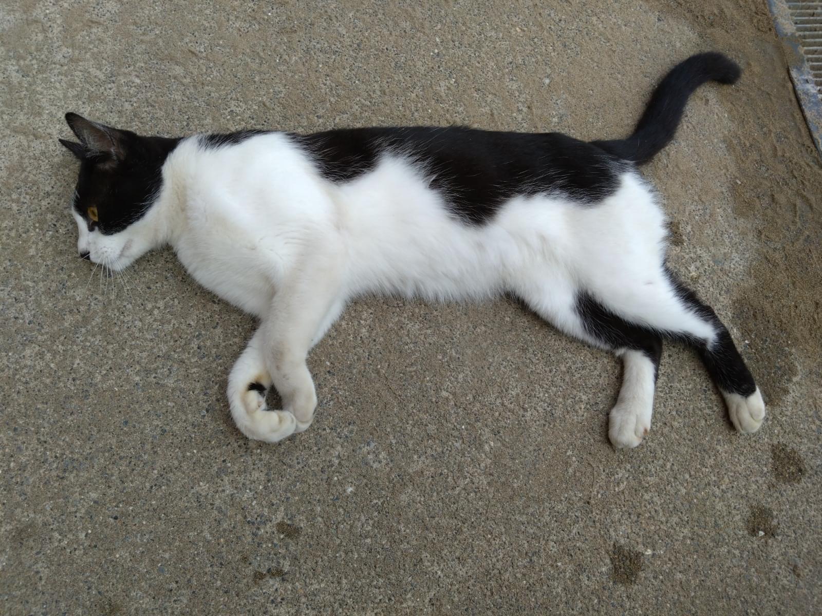 ある日突然現れるようになりました。白黒の綺麗な左右対称のハチワレくんです鼻は黒くリップラインも黒のイケニャンです。まだ去勢されておらず、若そうな印象です。細身の毛艶のいい子です。