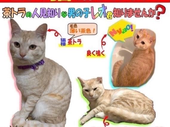 よく鳴きます。茶トラですがかなり薄く黄色やクリーム色に近いです。首輪してましたが今はどうか分かりません。しっぽは長く一見まっすぐに見えますが、よく見ると1番先だけ折れています。