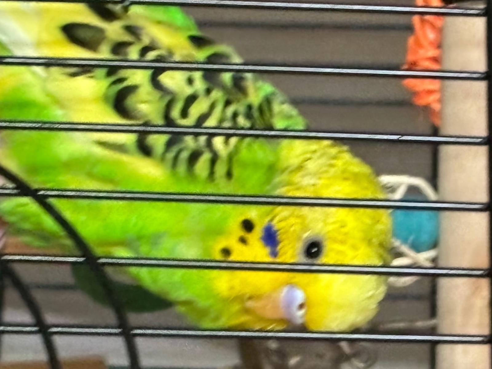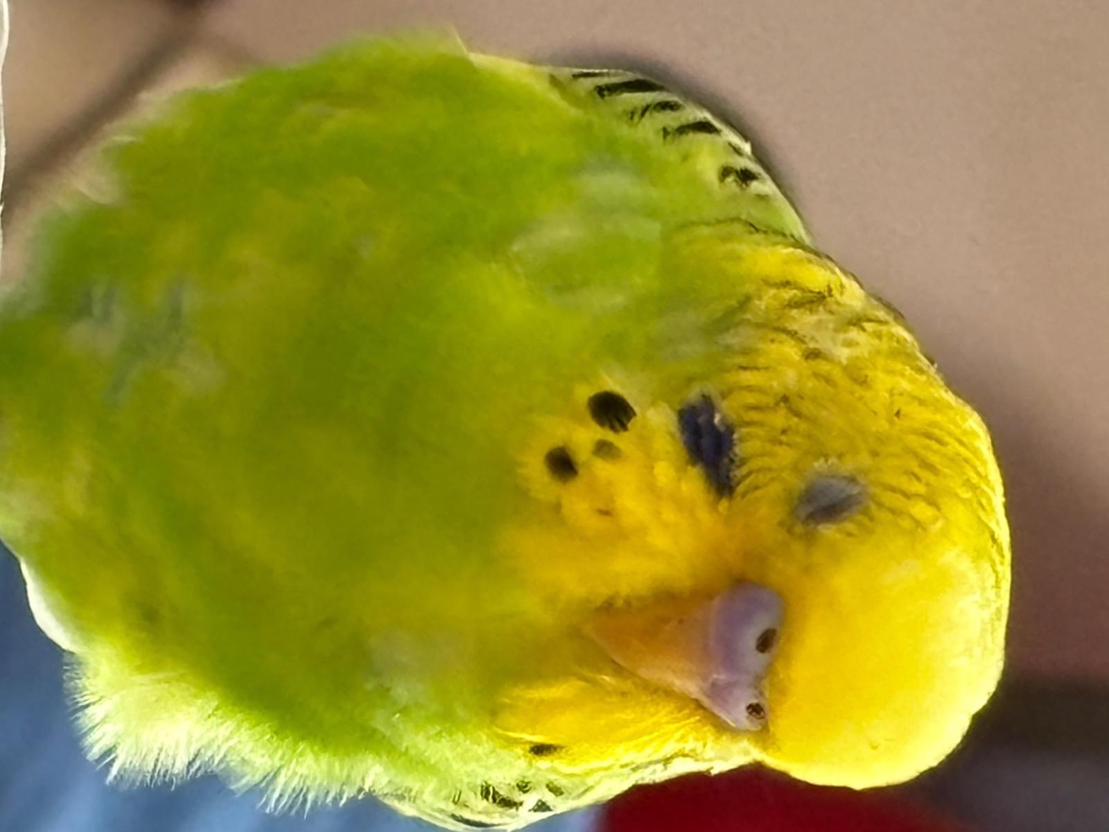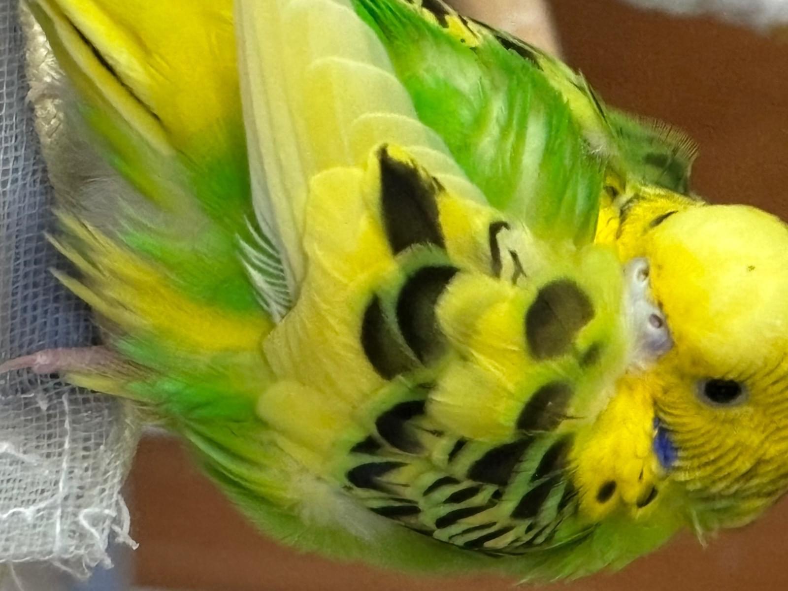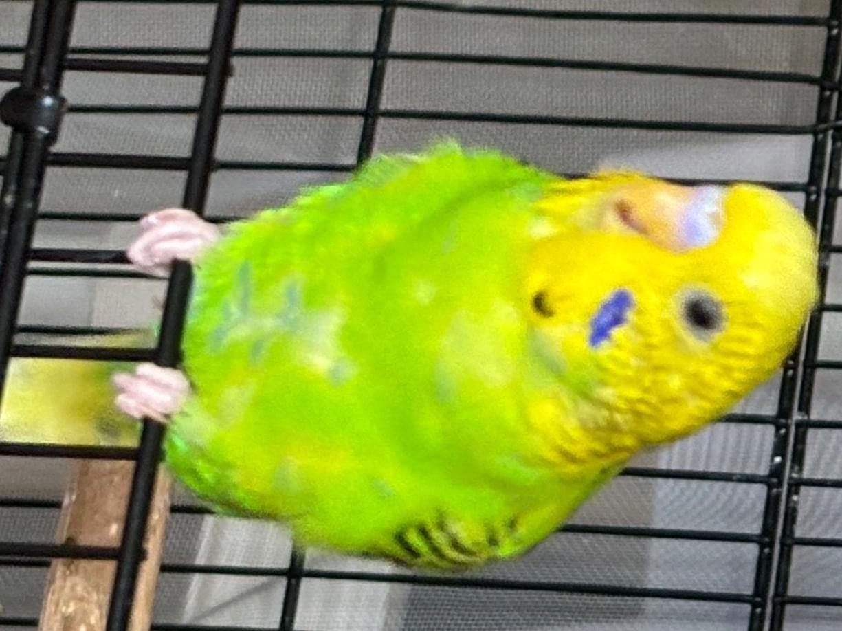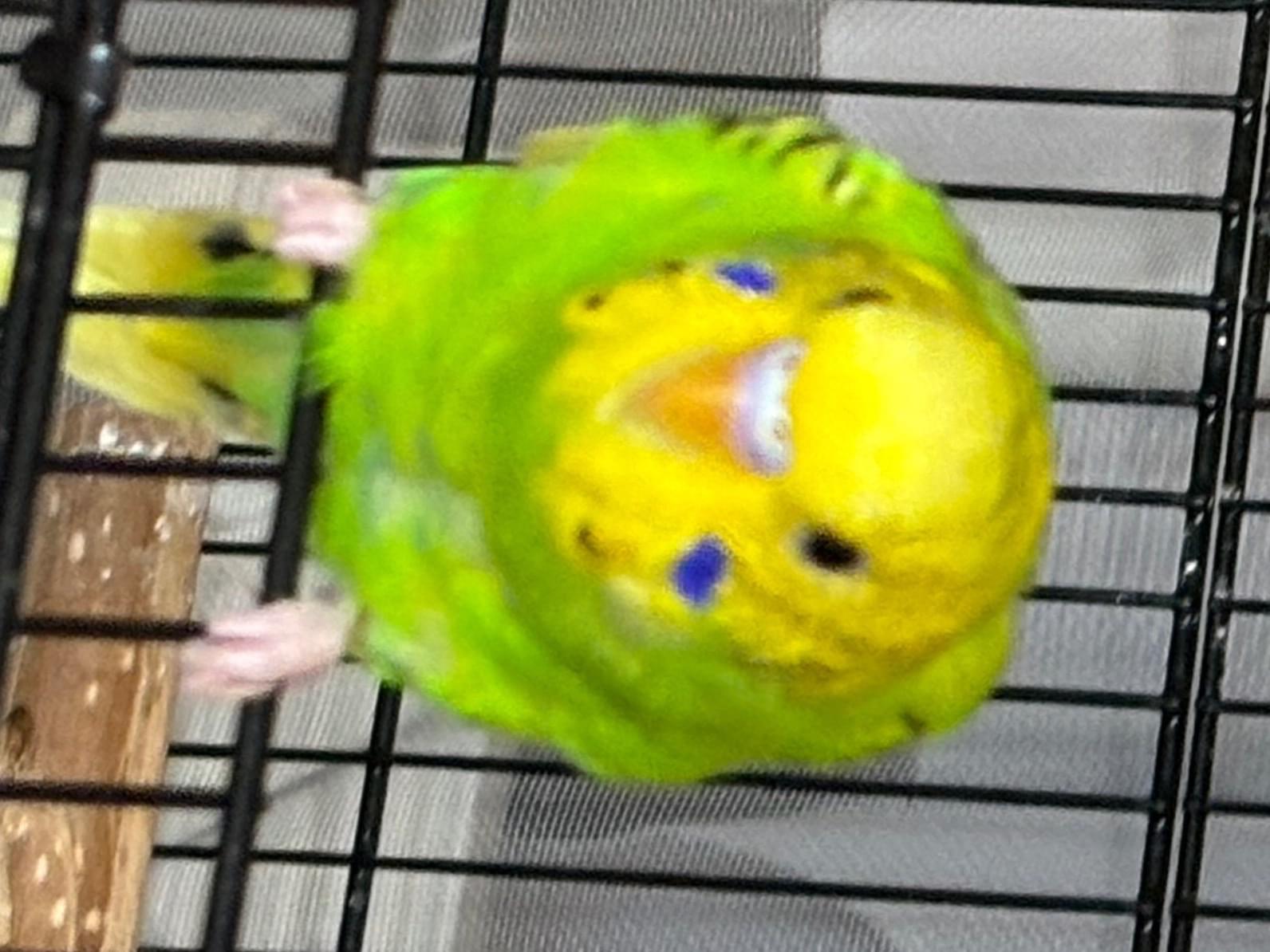 頭が黄色、身体が緑のセキセイインコを探しています。