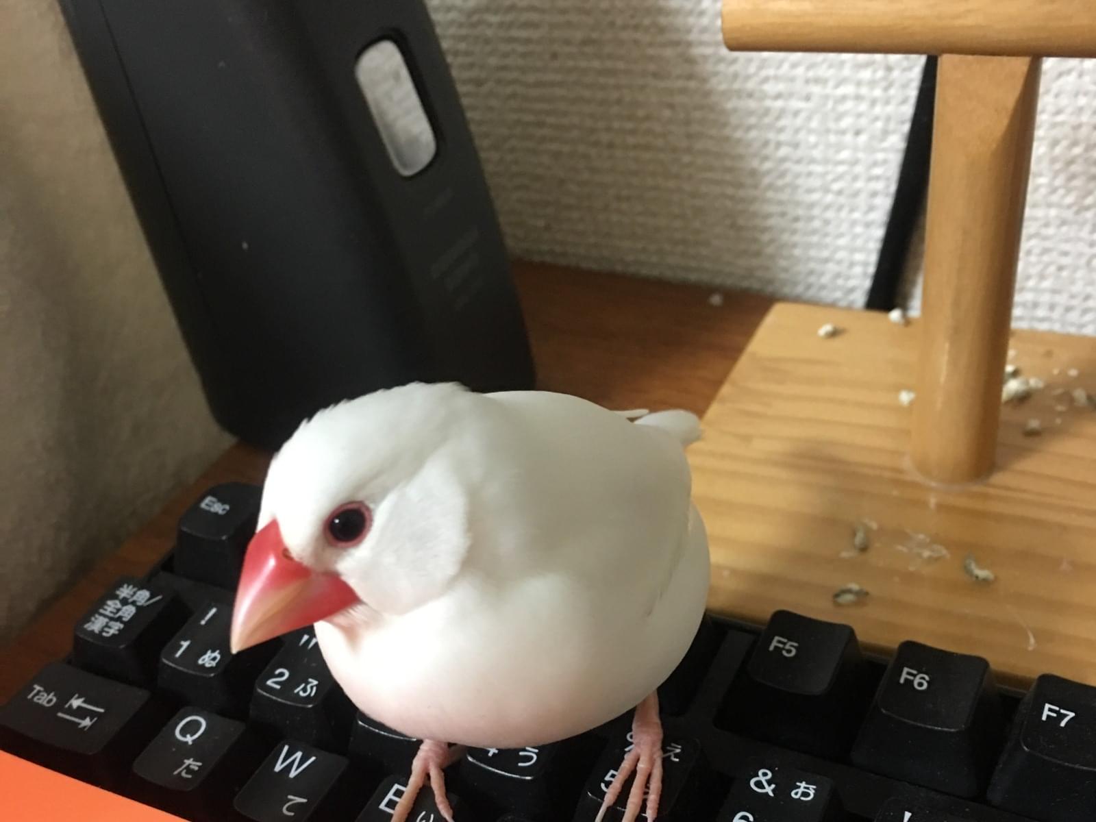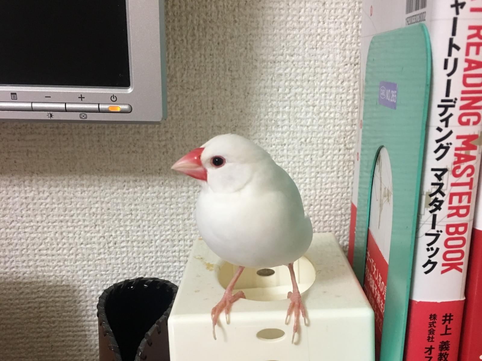床を歩く癖があるため、親指の爪が内側に曲がっています。何故か青米を食べません。少し変わった性格の文鳥です。