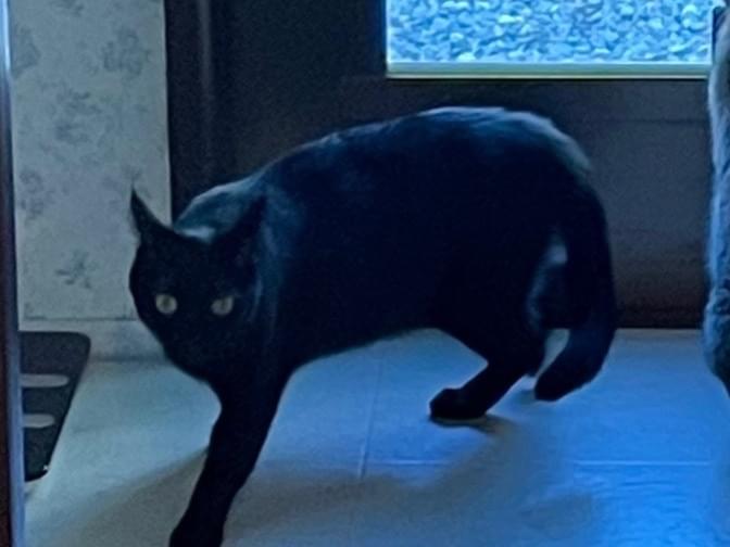 全体的に黒いですが、背中に少しだけ茶色の毛が混じっています。警戒心が強く、人を見るとシャーと言います。元のらねこです。もし見かけたら写真を撮り、場所を教えていただきたいです。よろしくお願いします。