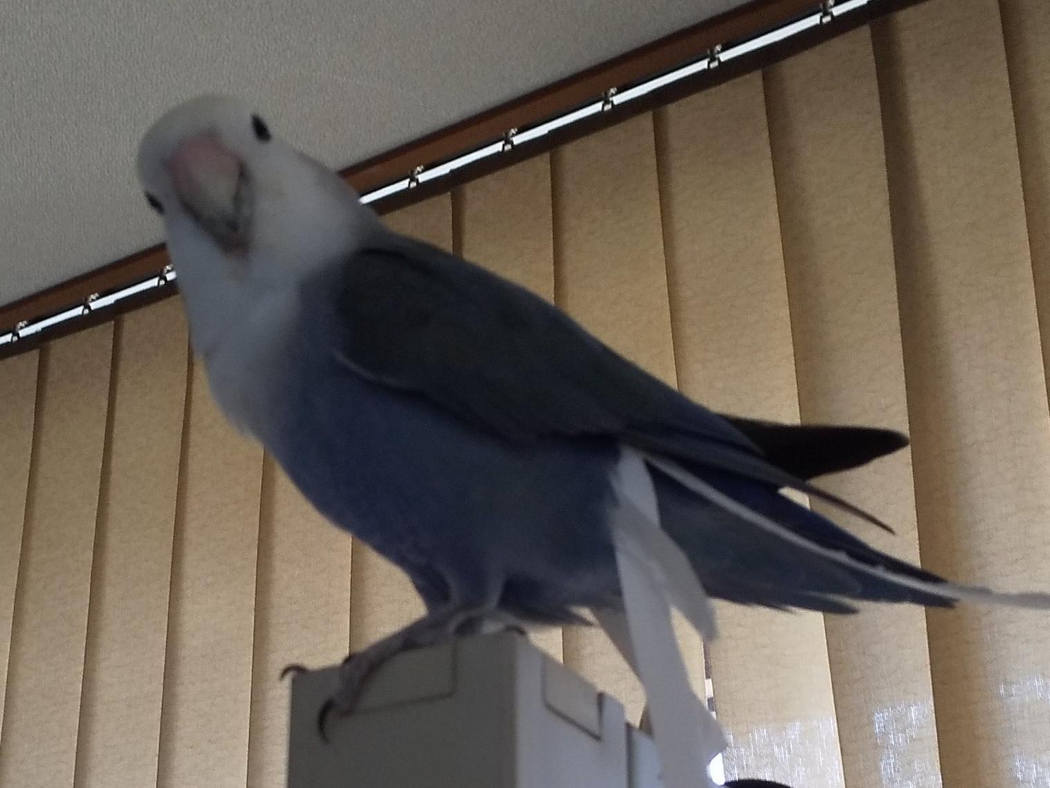 アイちゃん!と呼ぶと、ピッ!っと返事をしてくれます。肩や頭にも乗ってくる子で、人馴れはしています。おしゃべりはしません。