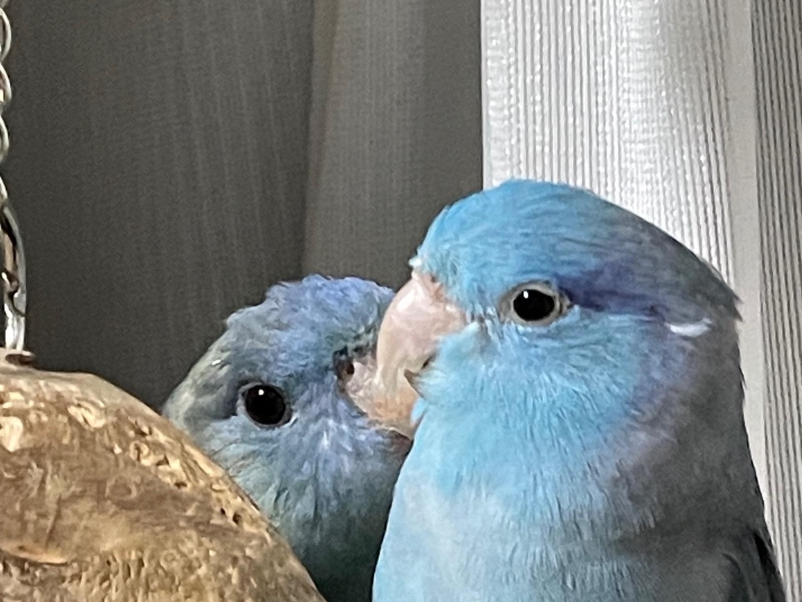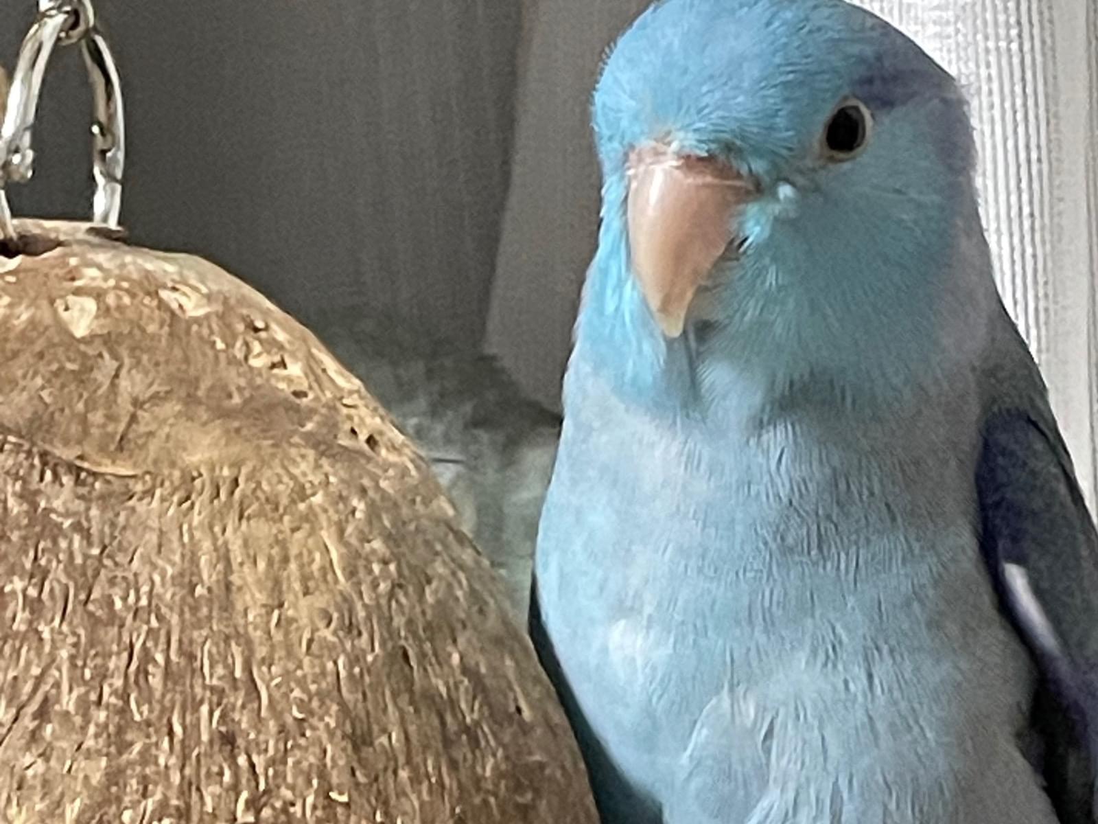 晴れた昼間に、少し開けてしまっていた窓から出たのだと思います。マメルリハというインコで、とても小さく青い色をしています。