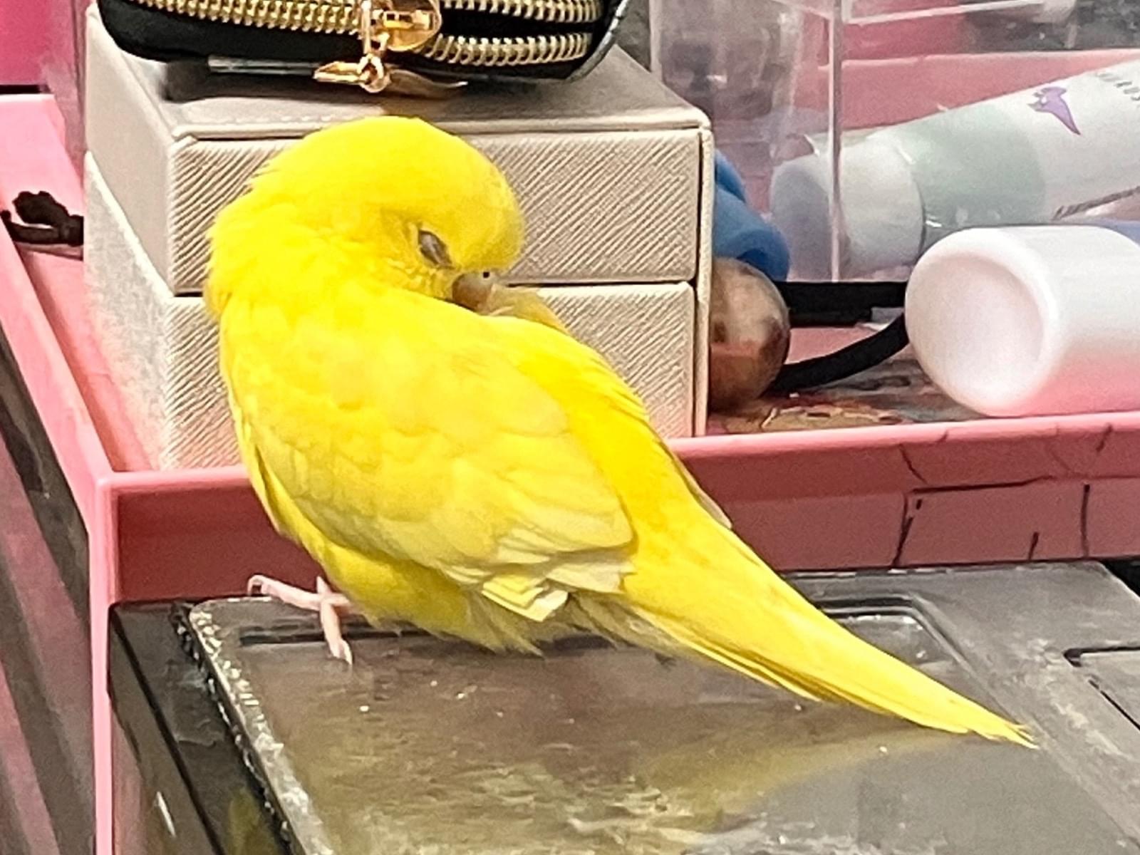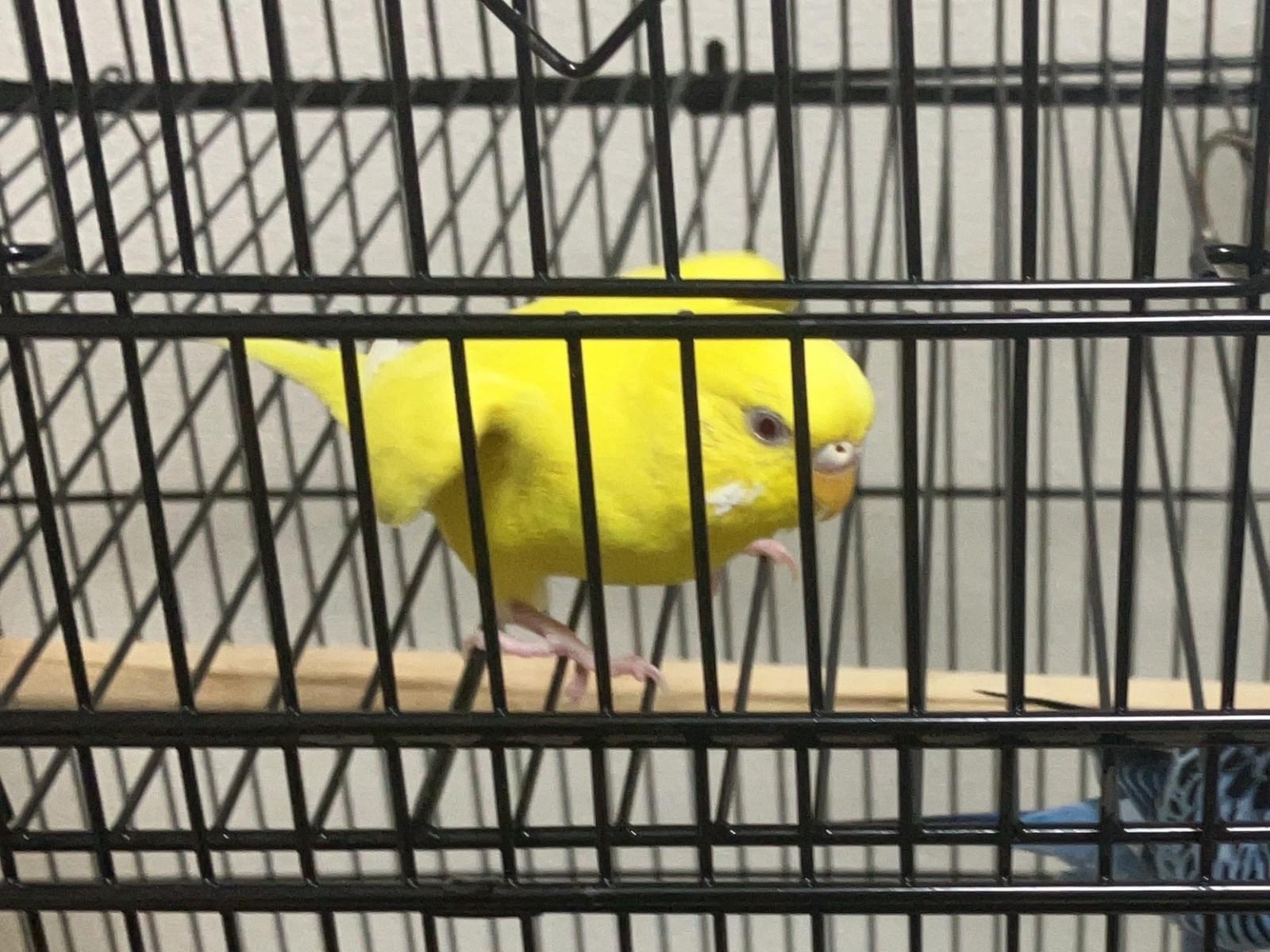 白い羽が混ざった黄色いセキセイインコ