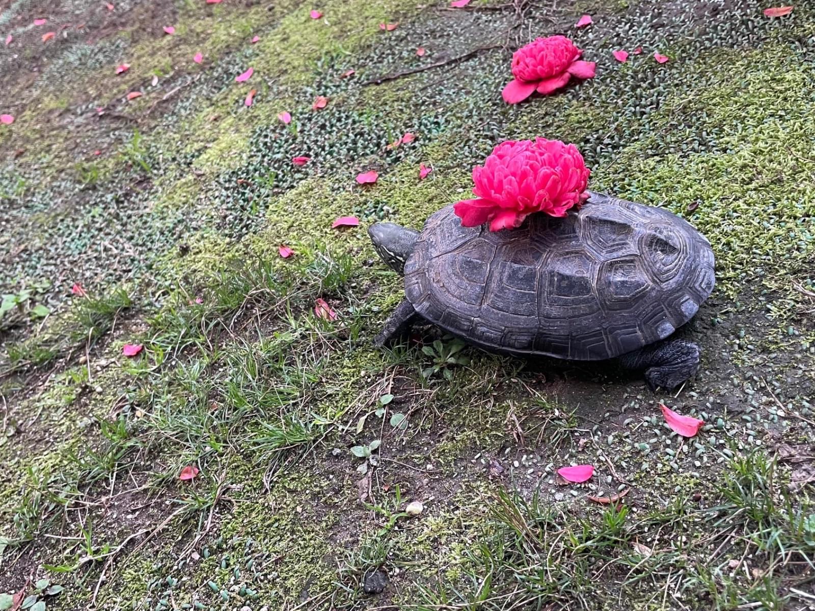 黒めの甲羅(15cm程度)のクサガメが庭においてあった衣装ケースからいなくなりました。