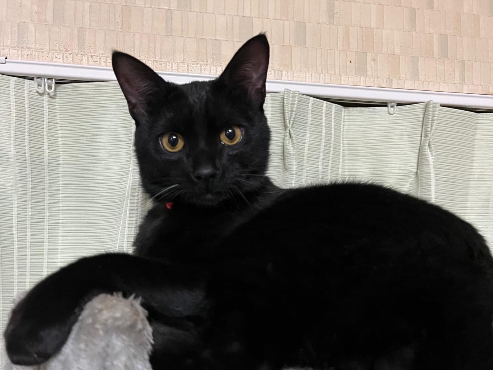 去勢済 オス 一歳 黒猫 手足尻尾がながく頭が小さい 当時赤いフェルトのリボンがついた首輪していました。