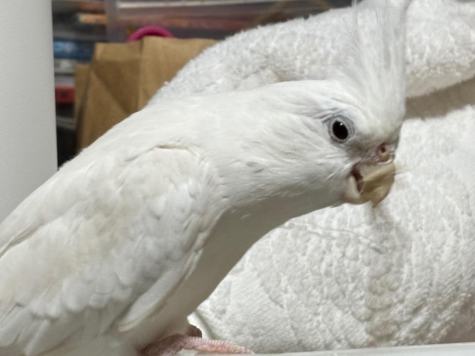 10月30日に不注意により窓から逃げてしまいました。「チロピッチロピッ」と自分の名前でよく鳴きます。真っ白なアルビノのオカメインコです。名前を呼んで探していますが、11月3日現在まで見つかっていません。昨日の雨も心配です。最後に姿を見た時、近くにカラスがいて、カラスはチラッピーのことを認識しているようでした。たくさん名前を呼びましたが、その後遠くに行ってしまい、姿は見当たりません。現在も家の近くやカラスが集まりそうな場所を探している状況です。