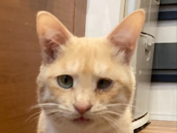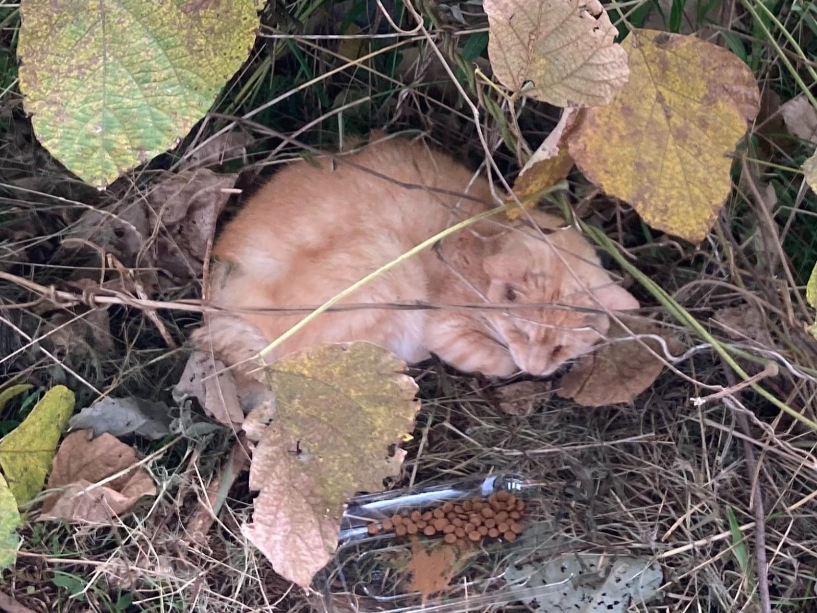10/12頃研究学園駅前公園で茶トラ猫の目撃情報。10/16に保護。子猫という情報だったが歯石の付き具合から痩せ細った雄の大人猫。尻尾はカギ尻尾で丸く平たい。シャーシャー猫で未去勢。歯槽膿漏の為に片目が炎症で始終涙目。餌が欲しい時は懐っこい。飢餓状態が長かったのか始終餌を欲しがる。抱っこは好きで無いようで、毛を鋤いて気持ちが良くてもゴロゴロ言わない。草むらの画像は保護当日。他は20日後。