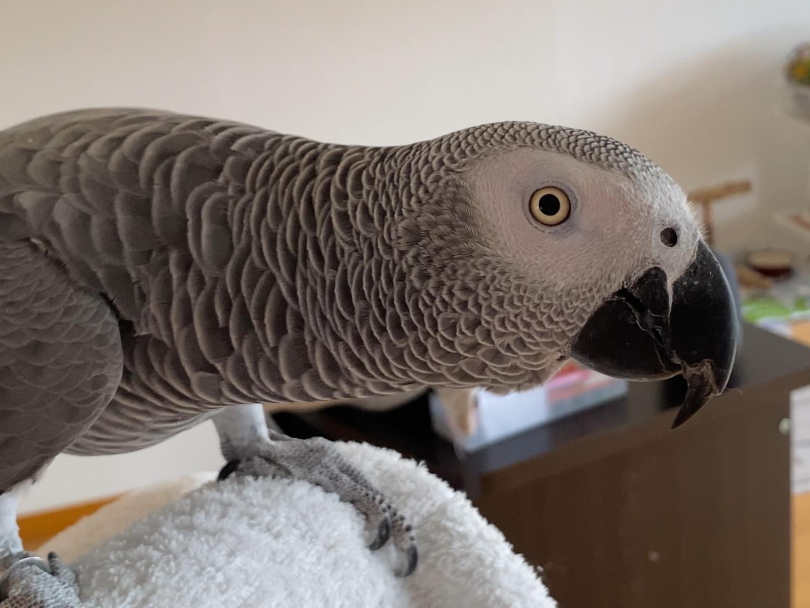11月7日の8時半ごろ飼っていたヨウムが逃げてしまいました。飛びますが、頻繁に飛ぶ子ではないのでまだ遠くに行ってないと思います。怖がりで臆病ですがひまわりの種をあげるとよってくると思います。