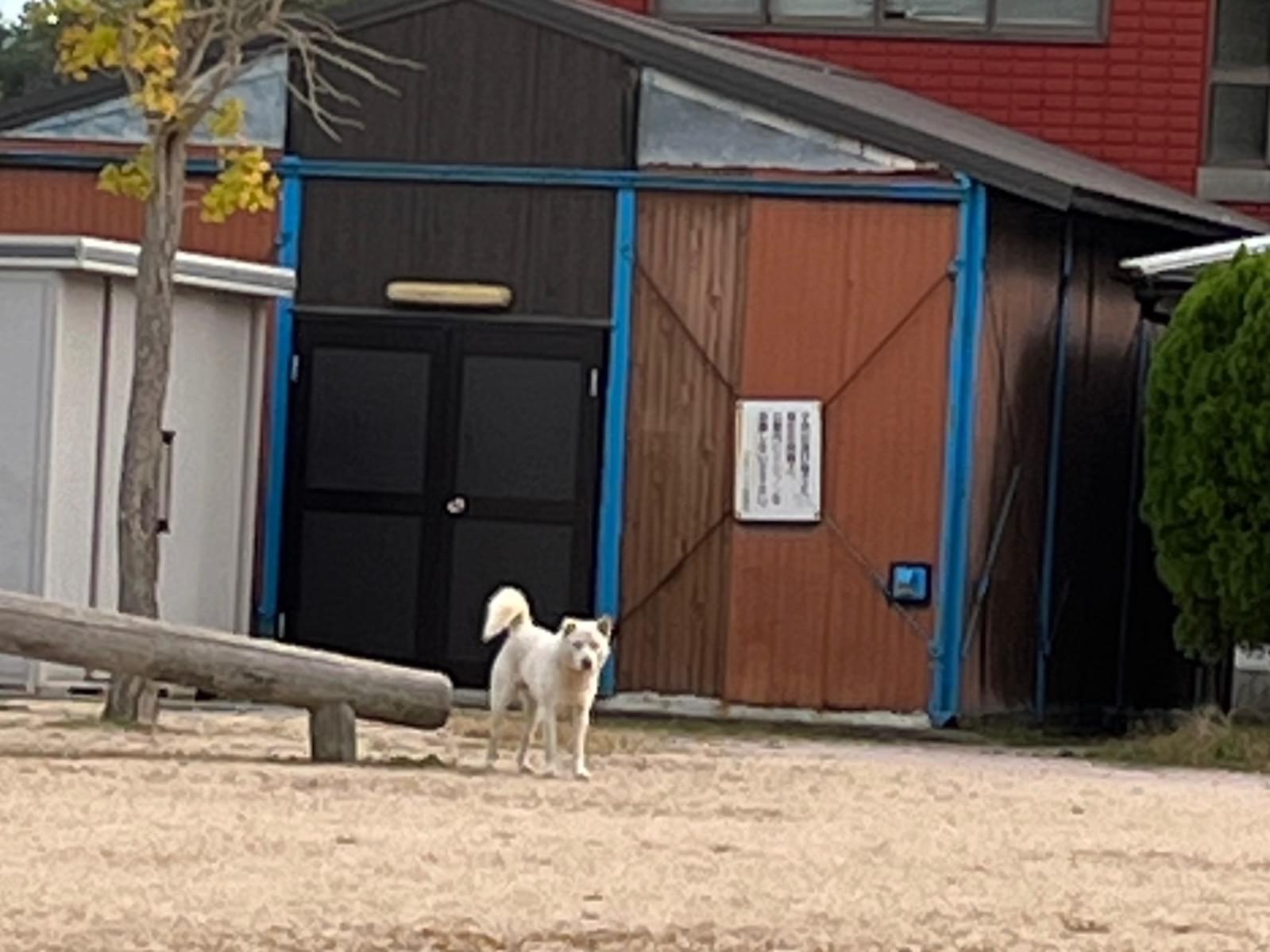 呉市安浦町安登の中央ハイツの公園で白の中型犬が徘徊しています。以前からいたような気もしますが、今日はかなり近くで逃げもせず。近寄ると一定の距離を保って離れていきます。