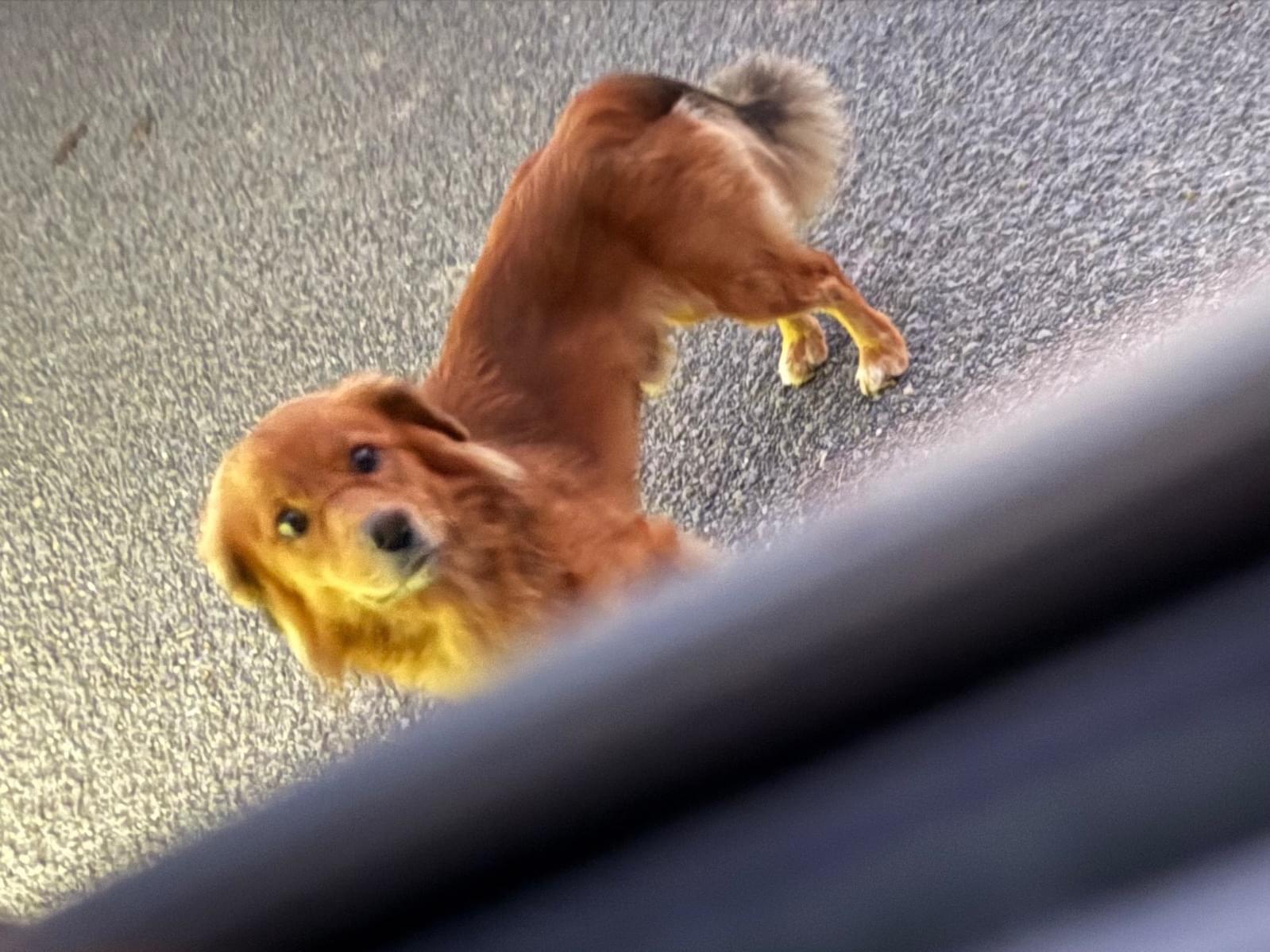 茶色くてしっぽのふさふさしてる犬を目撃しました
