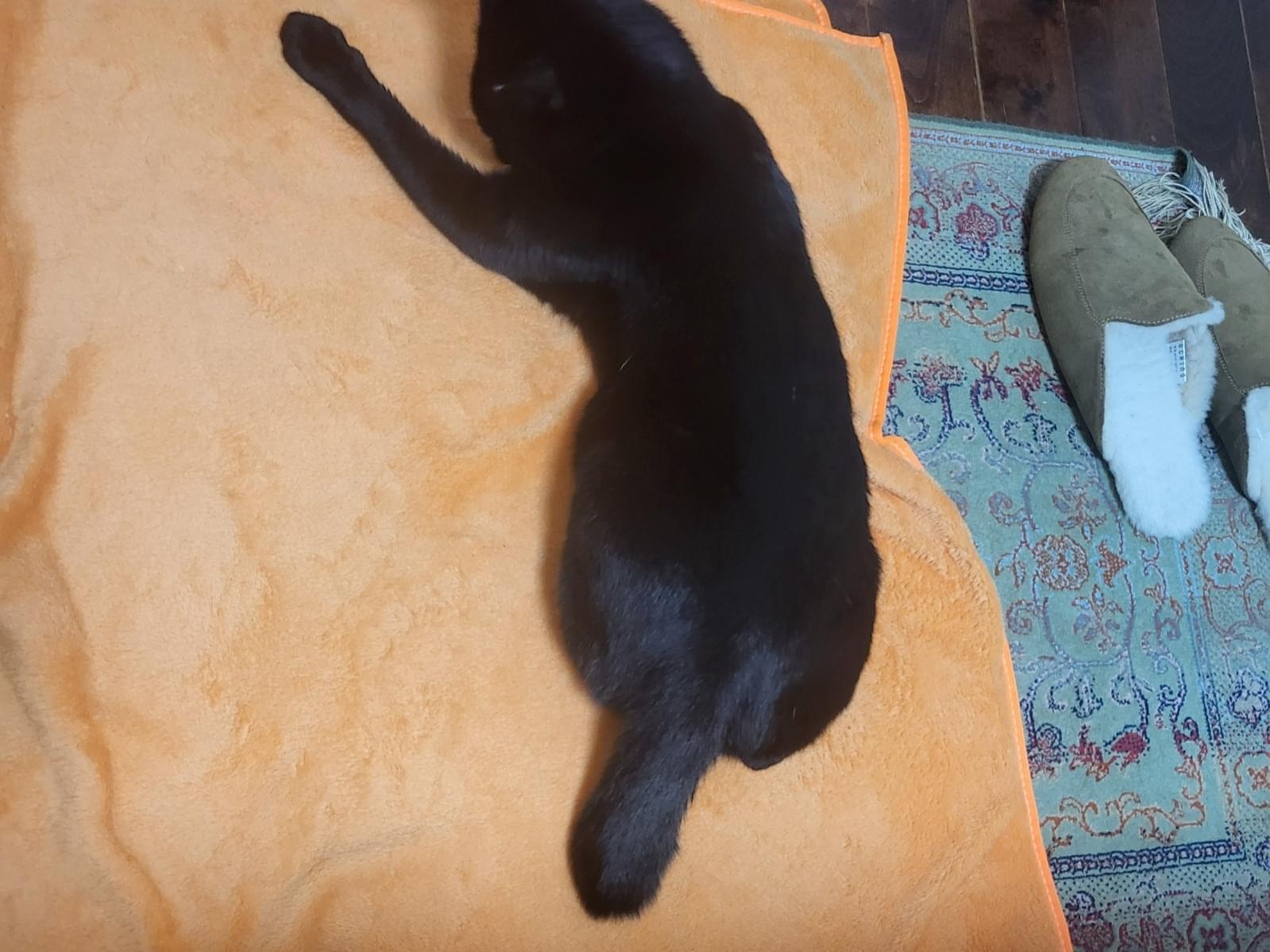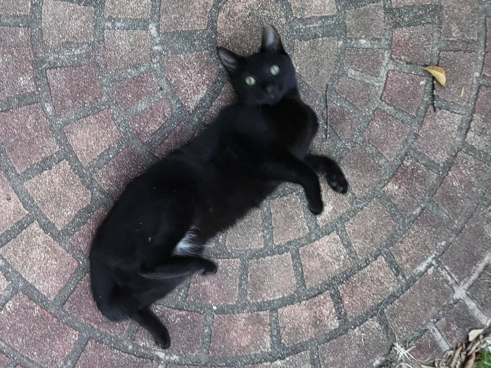 黒猫ですが、お腹のところ白毛がはいております。
