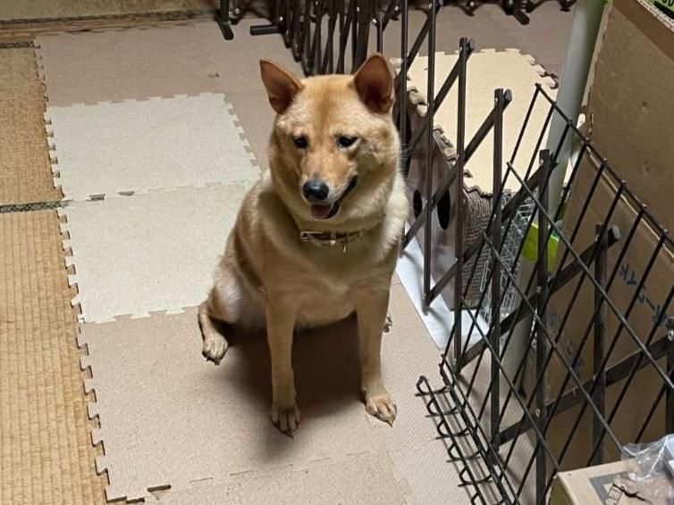 中型の柴の雑種です、白い擦り切れた首輪をしています