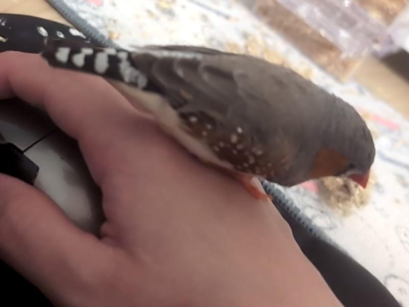 人懐っこく、肩や手や頭に乗りますが掴まれるのは好きではありません