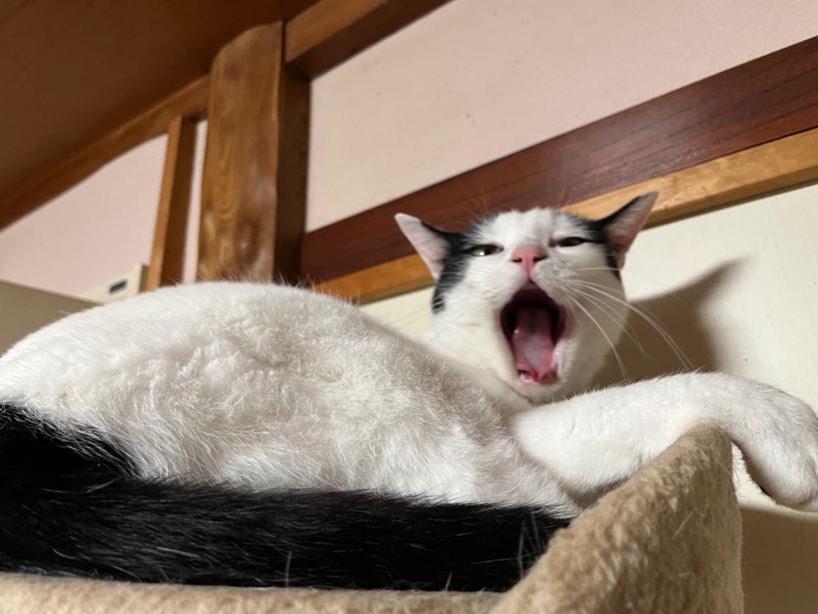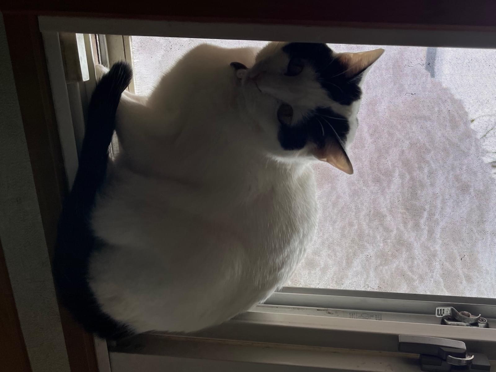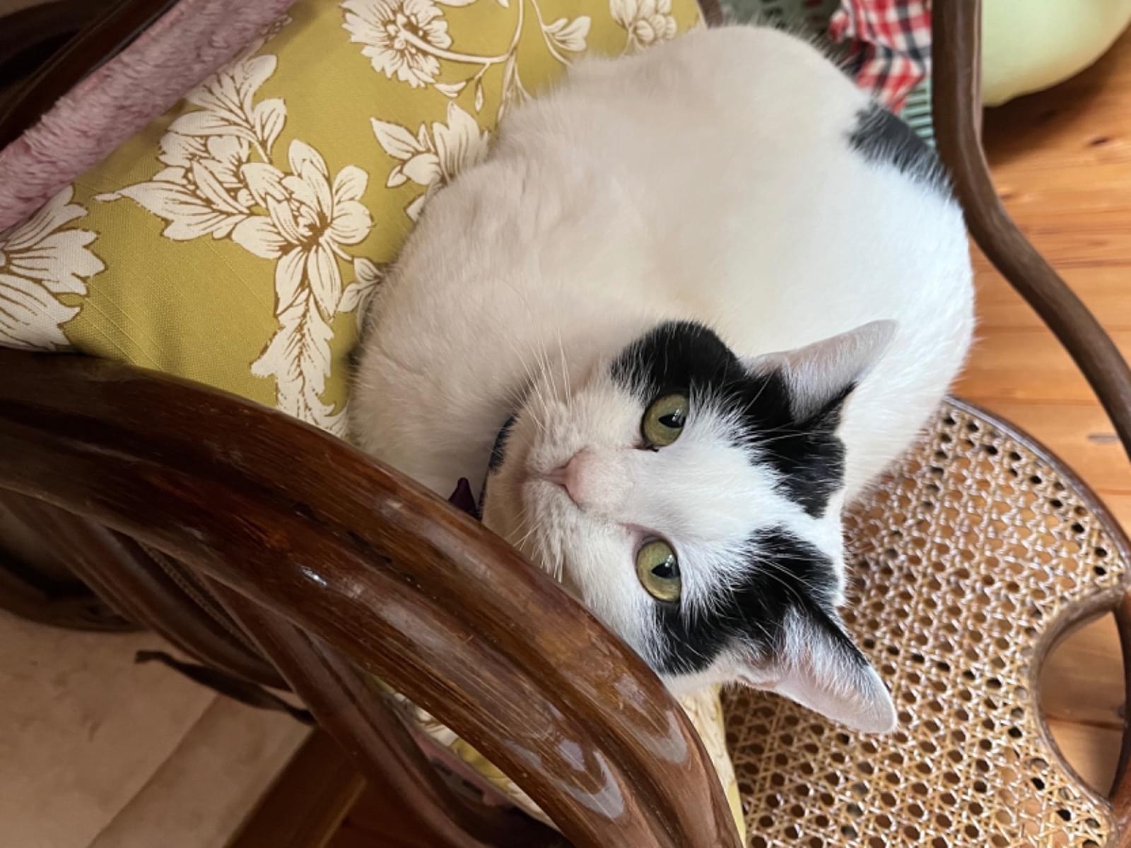 実家の白黒猫です。両耳の下としっぽと背中の右下に黒の模様があります。ご飯を食べずに2日間くらい出かける事がありましたが1週間戻ってこなくなりました。お腹がすくと一気に食べてから、ずーっと寝ます。他の猫にも興味を持つ持つのでどこかお友達猫ちゃんと遊んでるといいのですが…