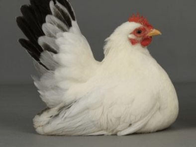 鳩ぐらいのニワトリで、尾羽が黒いです。シャモとは違い、大人しく突いたり、襲うことはありません。動きは早く、多少は飛べます。捕まえようとすると、体硬くします。