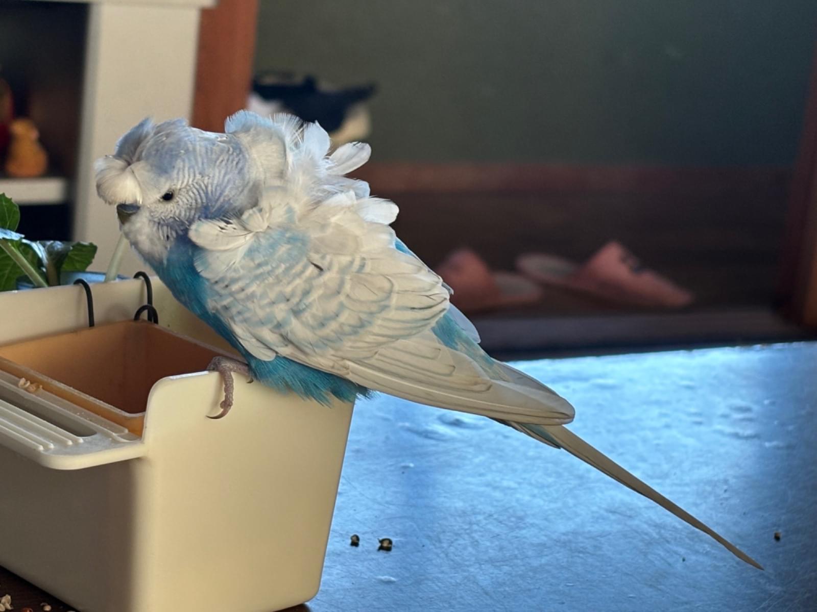 部屋の中で放鳥中に窓から逃げてしまいました。白青水色の羽衣セキセイインコです。