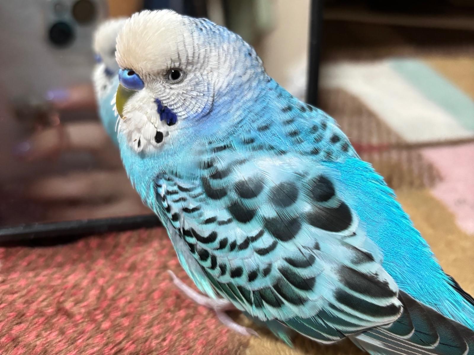 水色と白のセキセイインコを探しています。