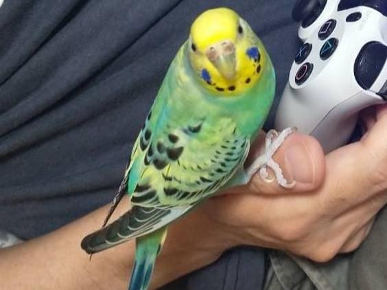 幼鳥時の怪我で後頭部の一部毛が生えていないセキセイインコです。