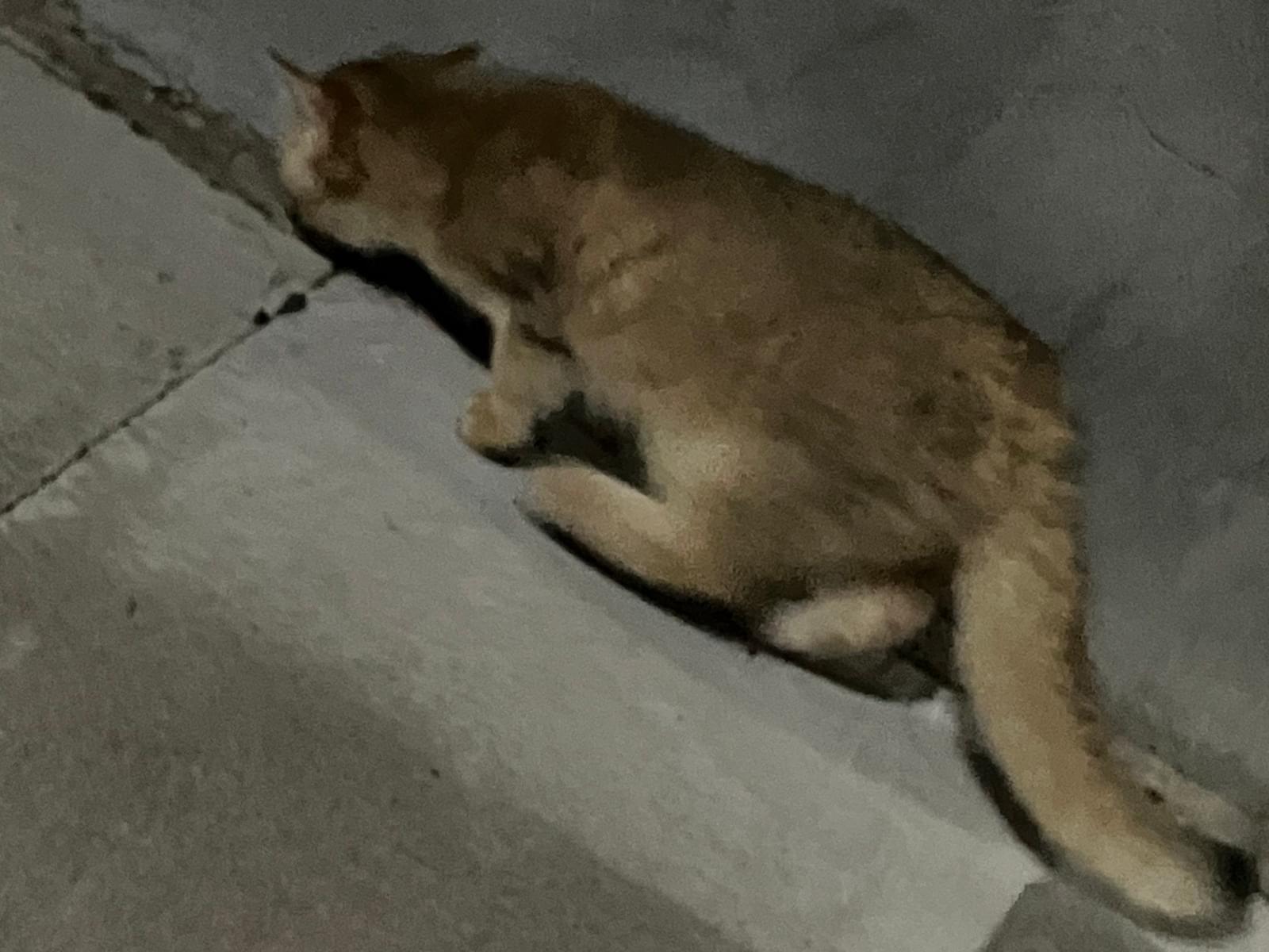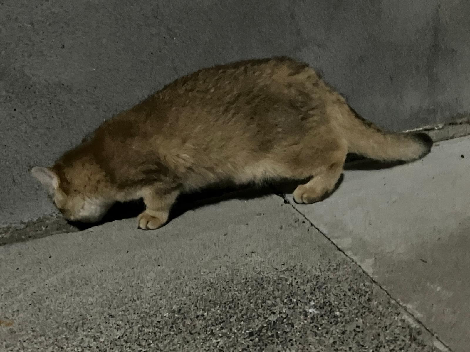 午後5時頃、この子がひとりで遊んでいました。ちょっと成長した子猫に見えました。外の世界が珍しいようで興奮ぎみ。呼ぶと寄ってきて触らせてくれ、毛並みはふかふかで綺麗でした。外に出て間もないかもしれません。首輪はしていませんでした。Twitterに迷子猫のタグ付けをしてUPしているうちに見失ってしまいました。ウォーキング中で、近所でもないので保護できず残念です。もうおうちに帰っているといいな。
