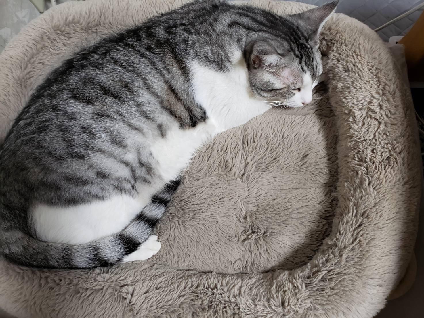 ⚫︎毛色:白・グレー・黒のしま模様 ⚫︎長いしっぽ