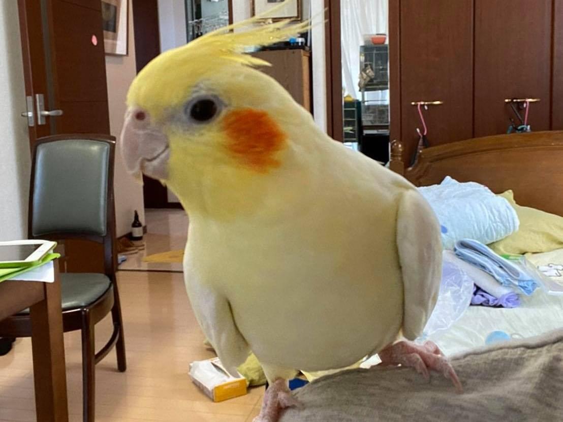 ・プルトという名前のオカメインコのため、自分の名前と一緒に、「プルトカモン」というと飛んできます。