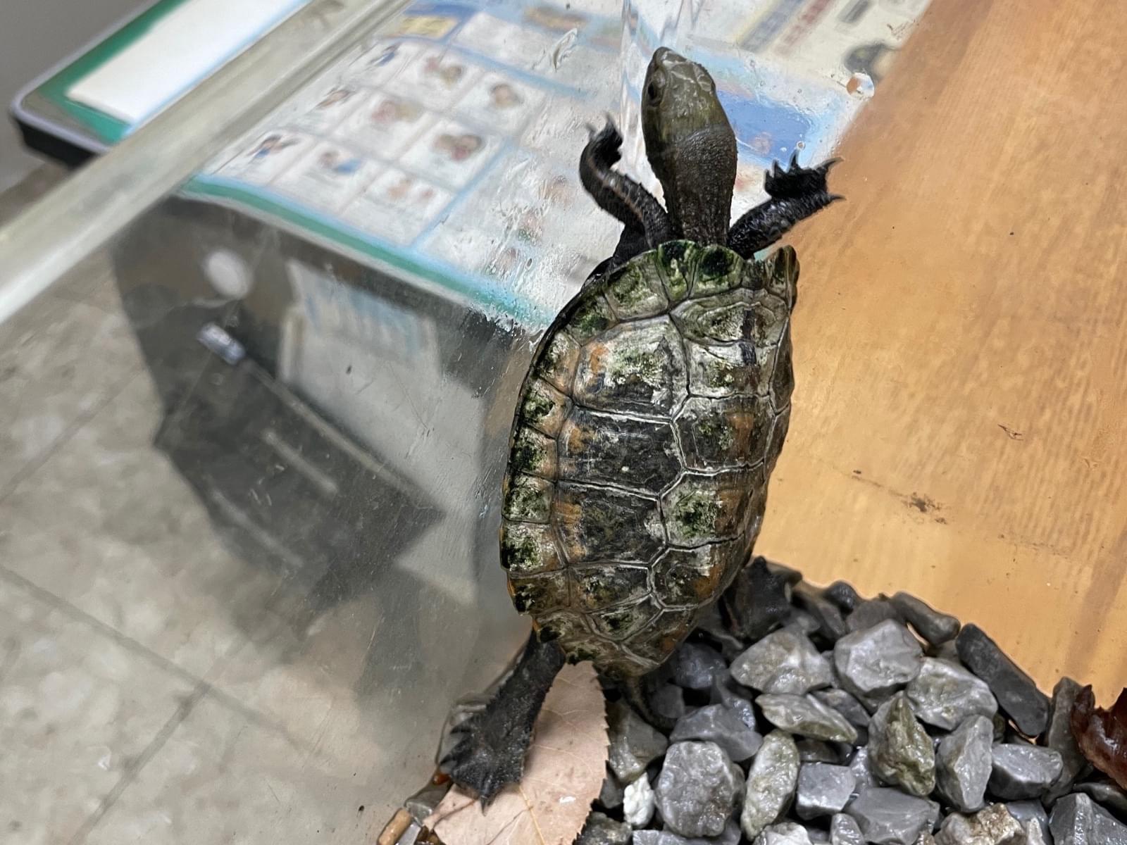 亀を保護しています(約8cm)