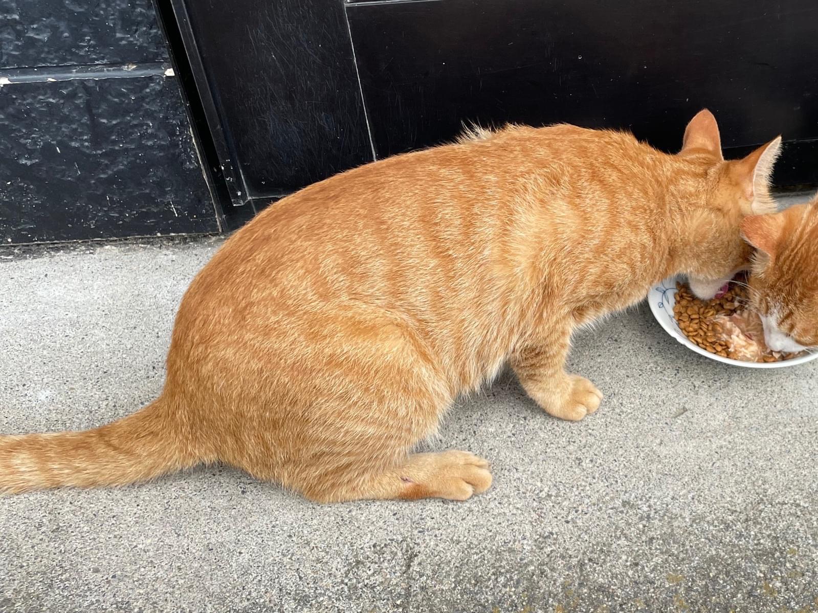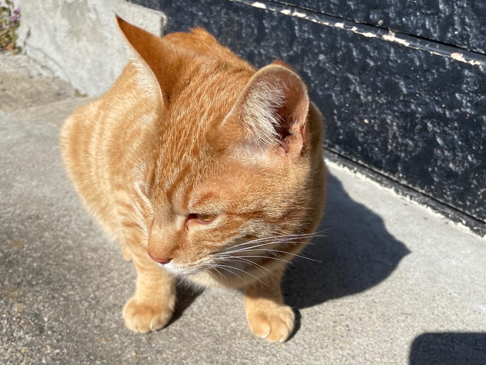 全身茶トラ模様で あまり人馴れはしていません。シッポは長く 中くらいの大きさです。