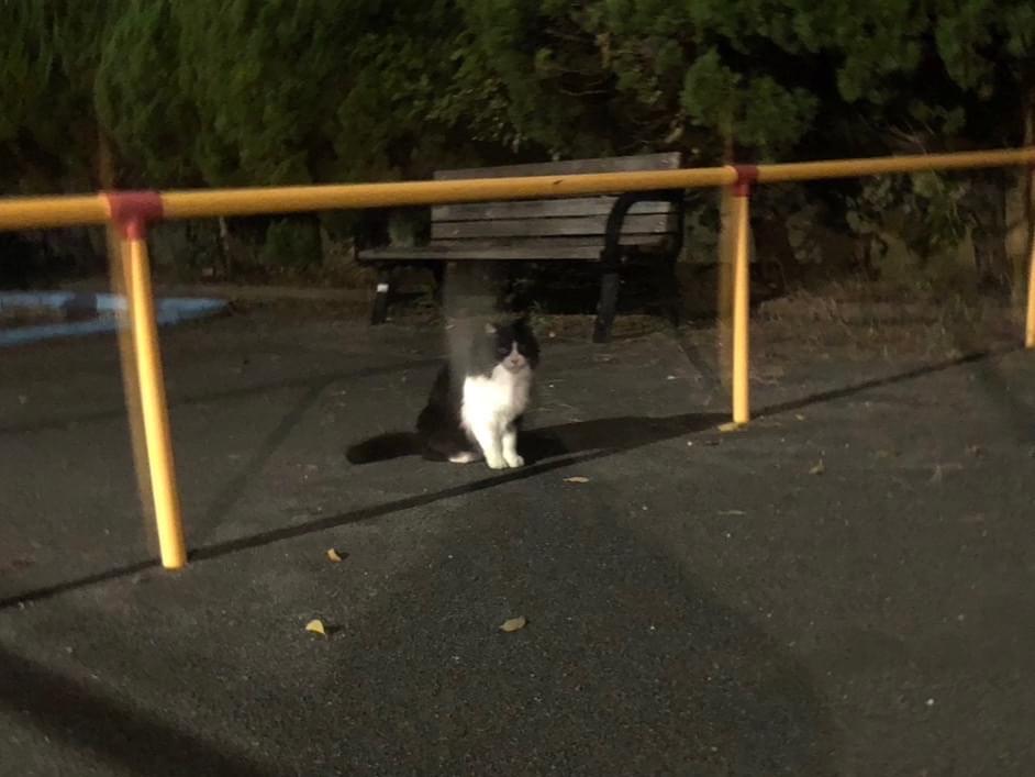 家近くの公園で綺麗な長毛寄りのハチワレちゃんを見かけました。