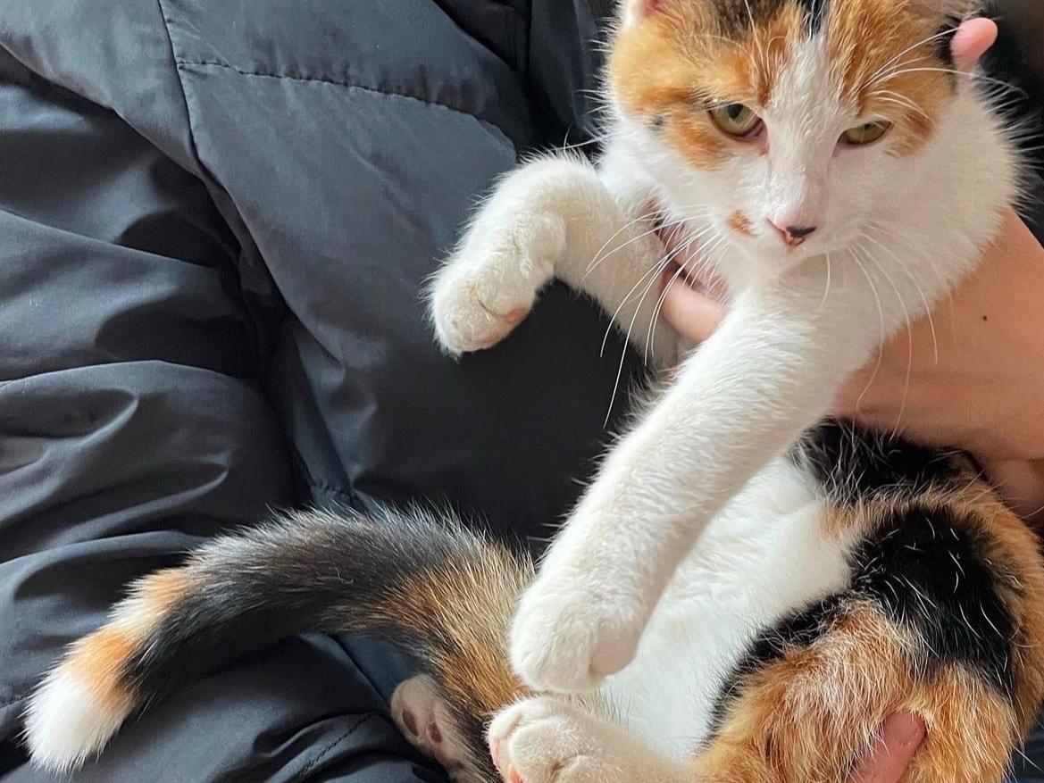口元の模様が特徴的な三毛猫を保護してます