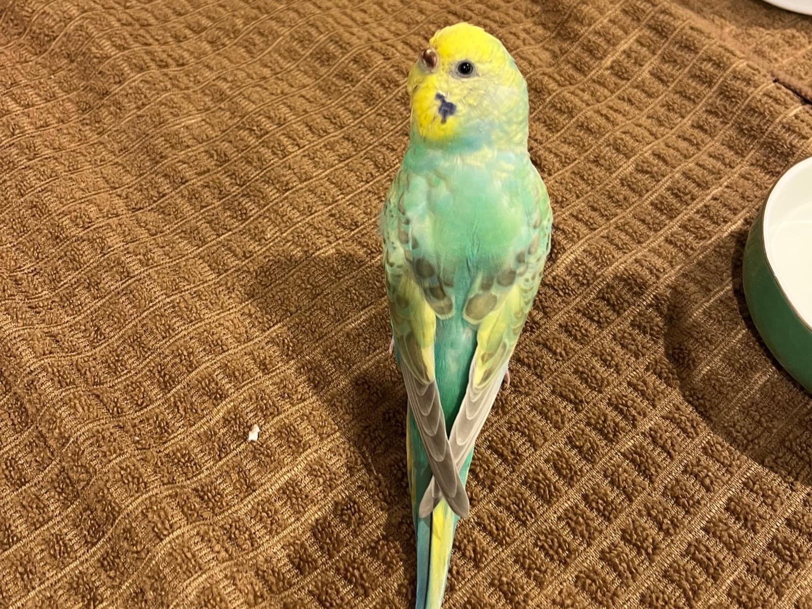 頭が黄色、身体がエメラルドグリーンのパステルカラーをしています。手乗りインコで優しい性格です。噛んだりしません。名前はソラで呼ぶと返事をします。人が好きなので、もしもどなたか保護してくださった方がいらっしゃいましたらご連絡お願いいたします。どうか、よろしくお願いいたします