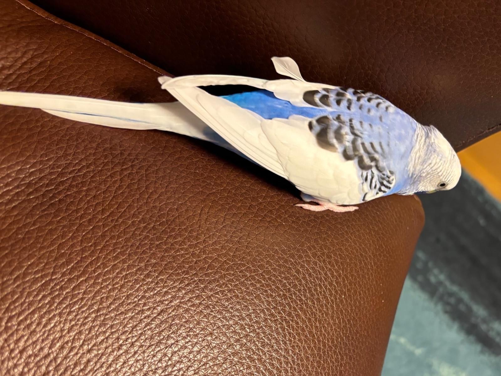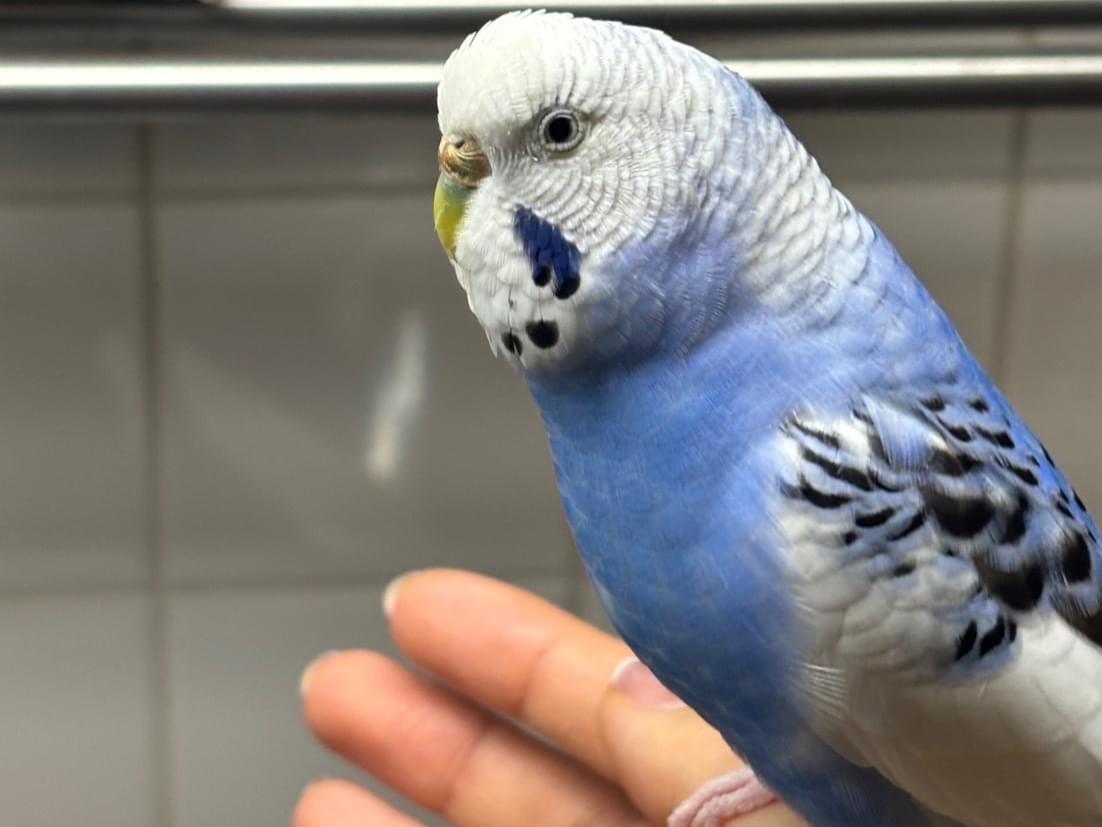 水色のセキセイインコ「うみちゃーん」と喋ります。