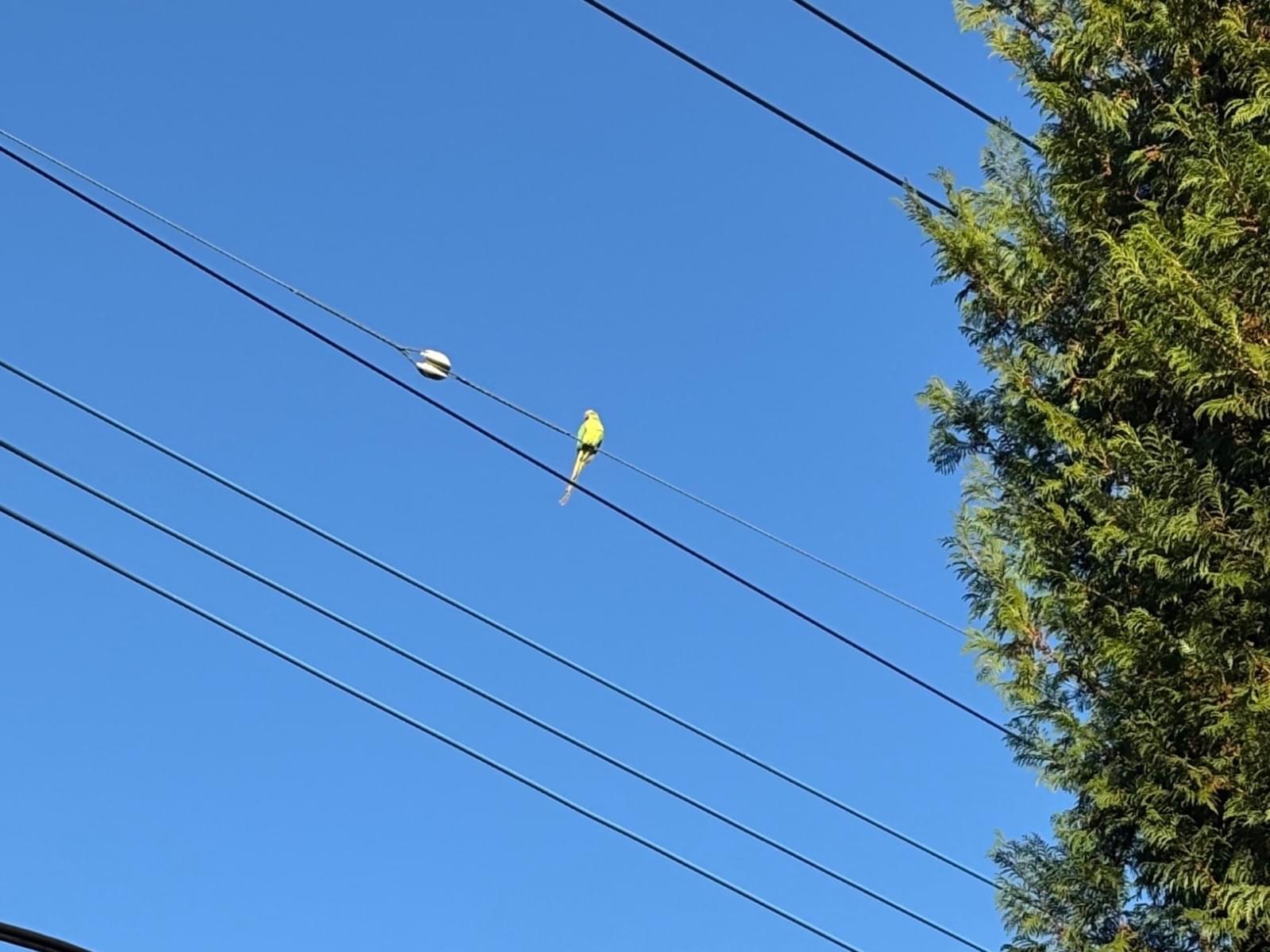 黄緑色の鳥が電線に止まって鳴いているのを見かけました。元気そうな様子でした。