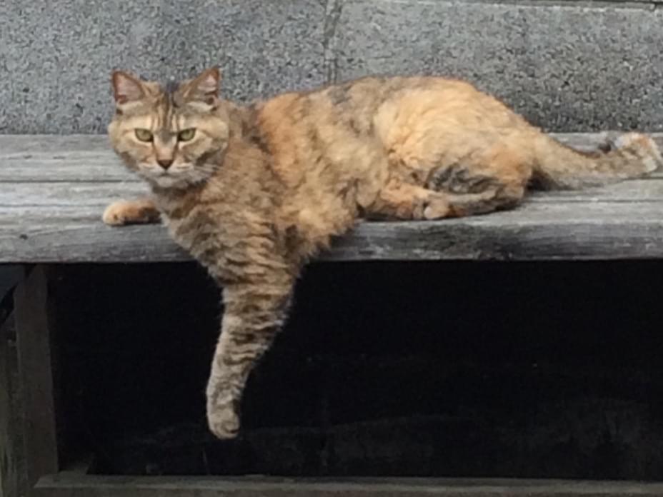 麦わら柄のメス猫です。右耳先端が少し切れています。大きな声でよく鳴きます。