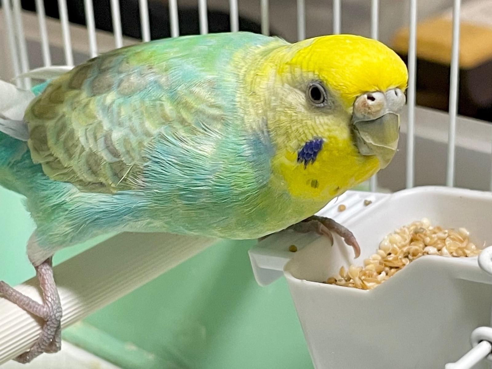 餌を食べる時に、餌箱に片足を乗せながら食べる癖があります。