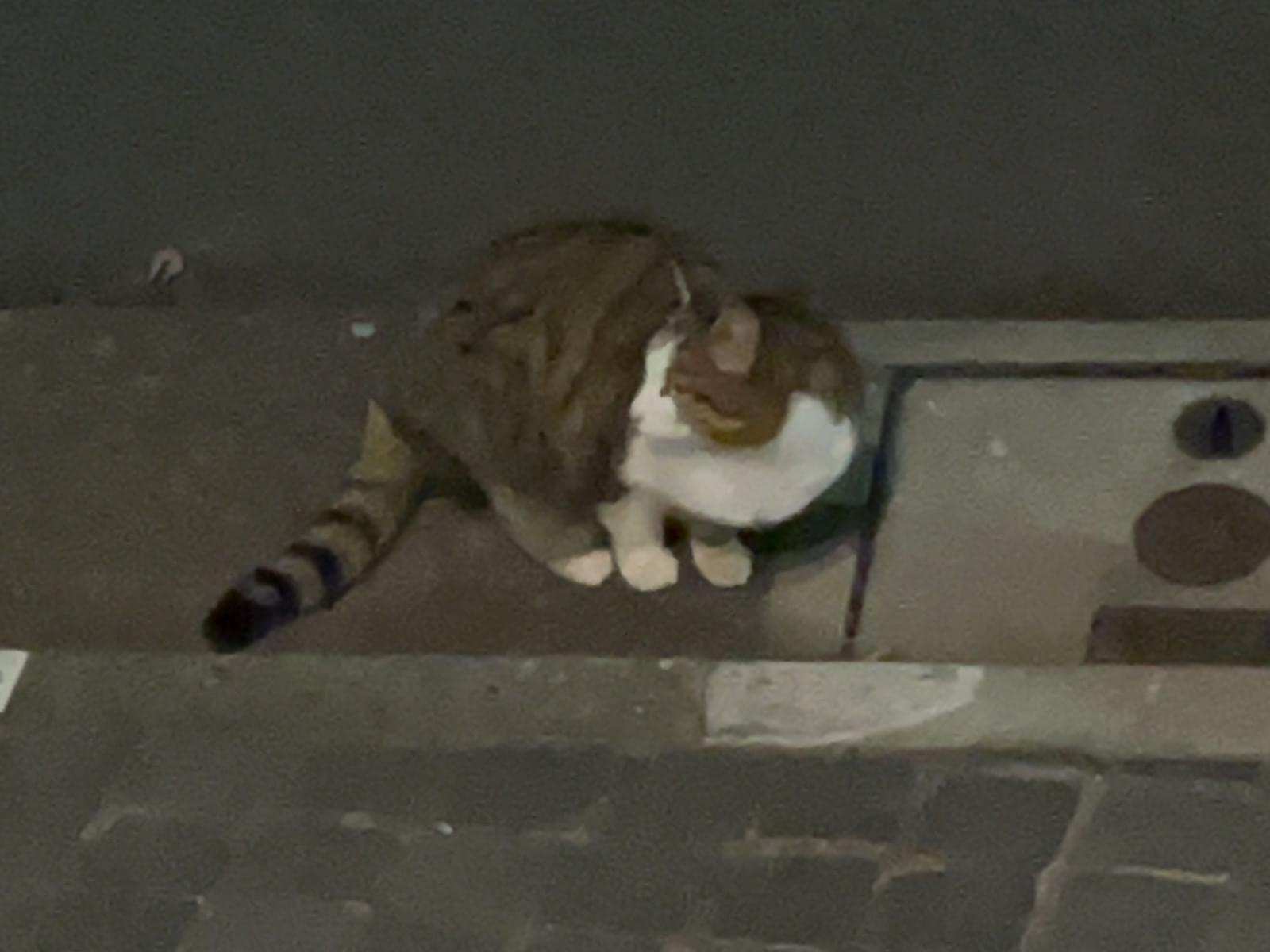 深夜一時頃、うちの前に来たので、ご飯を置いたら食べました。